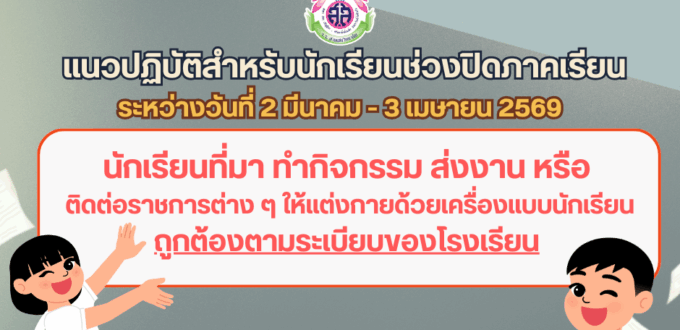 📌 อนุญาตให้นักเรียนที่แต่งกายด้วยชุดนักเรียนตามระเบียบของโรงเรียนเข้าสอบเท่านั้น