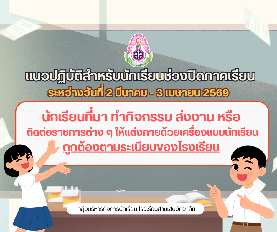 📌 ให้นักเรียนศึกษาข้อปฏิบัติในการเข้าสอบ และเข้าสอบตามแนวทางฯ ที่กำหนด