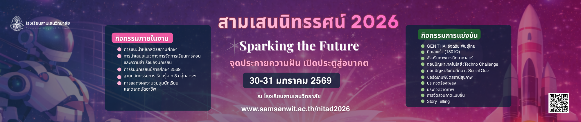 ข่าวล่าสุด ภาพกิจกรรม กิจกรรม “ค่ายนักภาษาไทย” โครงการยกระดับผลสัมฤทธิ์ทางการเรียน ของผู้เรียนสู่ความเป็นเลิศ ปีการศึกษา 2568 วันอาทิตย์ที่ 1 กุมภาพันธ์ 2569 Posted on1 กุมภาพันธ์ 20261 กุมภาพันธ์ 2026 ภาพกิจกรรม ประมวลภาพกิจกรรม “สามเสนนิทรรศน์ 2026 : Sparking the Future จุดประกายความฝัน เปิดประตูสู่อนาคต” ระหว่างวันที่ 30-31 มกราคม 2569 Posted on1 กุมภาพันธ์ 20261 กุมภาพันธ์ 2026 ภาพกิจกรรม การทดสอบทางการศึกษาระดับชาติขั้นพื้นฐาน O-NET ชั้นมัธยมศึกษาปีที่ 3 ด้วยระบบทดสอบดิจิทัล Digital Testing สนามสอบโรงเรียนสามเสนวิทยาลัย (รอบที่ 1) วันอาทิตย์ที่ 1 กุมภาพันธ์ 2569 Posted on1 กุมภาพันธ์ 20261 กุมภาพันธ์ 2026 ข่าวประชาสัมพันธ์ วีดิทัศน์การนำเสนอโครงสร้างหลักสูตรสถานศึกษา กิจกรรมการเรียนการสอนห้องเรียนพิเศษและการรับนักเรียน : กิจกรรมสามเสนนิทรรศน์ 2026 วันที่ 30-31 มกราคม 2569 ณ โรงเรียนสามเสนวิทยาลัย Posted on1 กุมภาพันธ์ 20261 กุมภาพันธ์ 2026 ข่าวประชาสัมพันธ์ ประกาศโรงเรียนสามเสนวิทยาลัย เรื่อง เรียกนักเรียนแทนผู้สละสิทธิ์เข้าศึกษาต่อระดับชั้นมัธยมศึกษาปีที่ 4 (ห้องเรียนพิเศษ) ปีการศึกษา 2569 โครงการห้องเรียน พสวท. (สู่ความเป็นเลิศ) ครั้งที่ 1 Posted on31 มกราคม 202631 มกราคม 2026 ภาพกิจกรรม มอบตัวนักเรียนระดับชั้นมัธยมศึกษาปีที่ 4 ปีการศึกษา 2569 ห้องเรียน พสวท. (สู่ความเป็นเลิศ) วันเสาร์ที่ 31 มกราคม 2569 Posted on31 มกราคม 202631 มกราคม 2026 ข่าวประชาสัมพันธ์ ประกาศผลการแข่งขัน ทักษะทางวิชาการ “สามเสนนิทรรศน์ 2026” Posted on31 มกราคม 202631 มกราคม 2026 ข่าวประชาสัมพันธ์ กำหนดการนำเสนอกิจกรรมประกวดนักเรียนสามเสนต้นแบบสร้างสรรค์พลังงานและสิ่งแวดล้อม วันศุกร์ที่ 30 มกราคม พ.ศ. 2569 เวลา 10.00 – 12.00 น. ณ ห้องแพรวชมพู อาคาร 3 โดย งานอนุรักษ์พลังงานและสิ่งแวดล้อม โรงเรียนสามเสนวิทยาลัย ร่วมกับ มูลนิธินักเรียนเก่าสามเสนวิทยาลัย Posted on29 มกราคม 202629 มกราคม 2026 ภาพกิจกรรม กิจกรรมปันน้ำใจสู่โรงเรียนตำตรวจตระเวนชายแดน โครงการพัฒนาคุณธรรมจริยธรรม ค่านิยม และคุณลักษณะอันพึ่งประสงค์ มอบเงินสนับสนุนเพื่อจะซื้ออุปกรณ์การเรียนและโครงการต่างๆ วันพุธที่ 29 มกราคม 2569 Posted on29 มกราคม 202629 มกราคม 2026 ภาพกิจกรรม พิธีมอบโล่ เครื่องหมายเกียรติคุณ ข้าราชการครูและบุคลากรทางการศึกษาและมอบเกียรติบัตรนักเรียนที่ทำชื่อเสียงให้กับโรงเรียนสามเสนวิทยาลัย เนื่องในวันสามเสนวิทยาลัย ครบรอบ 70 ปี วันจันทร์ที่ 3 กุมภาพันธ์ 2568 Posted on28 มกราคม 202628 มกราคม 2026 Previous Next เผยแพร่ พระราชประวัติ สมเด็จพระนางเจ้าสิริกิติ์ พระบรมราชินีนาถ พระบรมราชชนนีพันปีหลวง Posted on25 ตุลาคม 202525 ตุลาคม 2025 สถิตอยู่ในใจตราบนิรันดร์ น้อมสำนึกในพระมหากรุณาธิคุณ