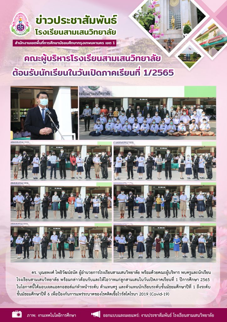 คณะผู้บริหารต้อนรับนักเรียนในวันเปิดภาคเรียนที่ 1 ปีการศึกษา 2565