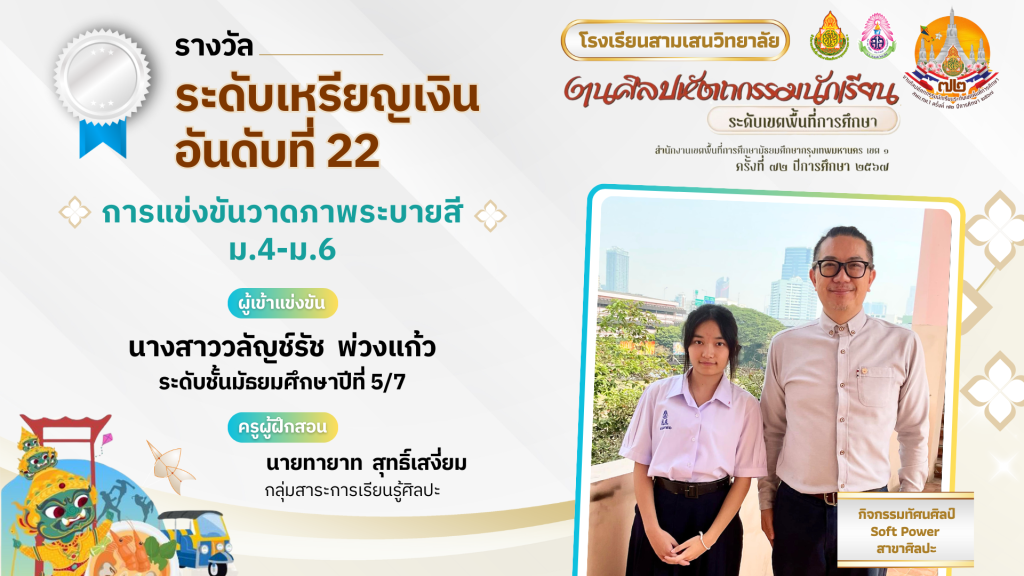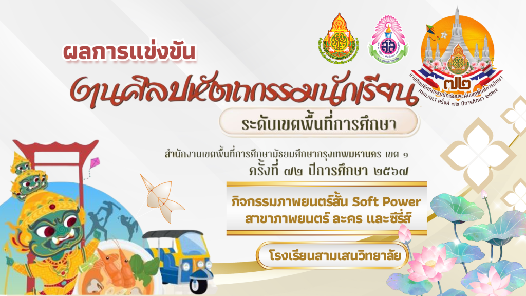 โรงเรียนสามเสนวิทยาลัย เข้าร่วมการแข่งขันงานศิลปหัตถกรรมนักเรียน ระดับเขตพื้นที่การศึกษา ครั้งที่ 72 ปีการศึกษา 2567 สำนักงานเขตพื้นที่การศึกษามัธยมศึกษากรุงเทพมหานคร เขต 1 ณ ศูนย์แข่งขันโรงเรียนในสังกัดสำนักงานเขตพื้นที่การศึกษามัธยมศึกษากรุงเทพมหานคร เขต 1 ระหว่างวันที่ 14-24 มกราคม 2568 จำนวน 27 รายการ แบ่งออกเป็น