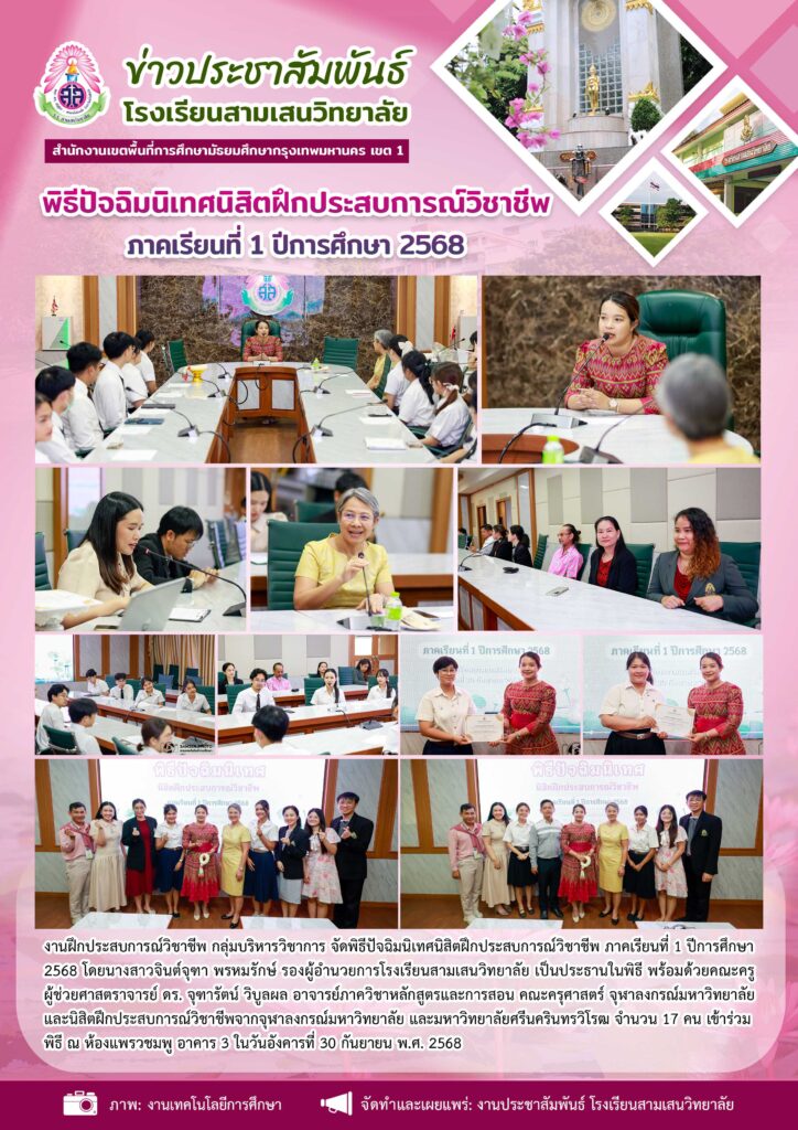 30 กันยายน 2568 พิธีปัจฉิมนิเทศนิสิตฝึกประสบการณ์วิชาชีพ ภาคเรียนที่ 1 ปีการศึกษา 2568 โรงเรียนสามเสนวิทยาลัย30 กันยายน 2025Written by งานประชาสัมพันธ์