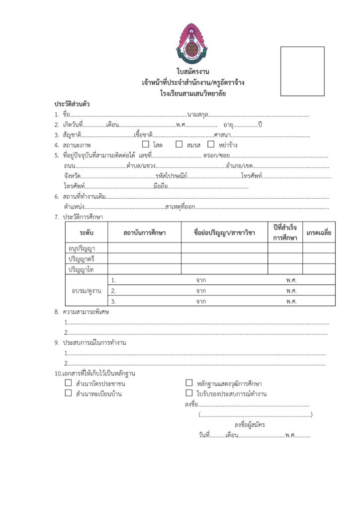 ประกาศโรงเรียนสามเสนวิทยาลัย เรื่อง การรับสมัครลูกจ้างชั่วคราว ตำแหน่ง ครูอัตราจ้าง วิชาชีววิทยา10 ตุลาคม 2025Written by งานประชาสัมพันธ์ ประกาศรับสมัครครูอัตราจ้างสอนวิชาชีววิทยา พร้อมใบสมัคร