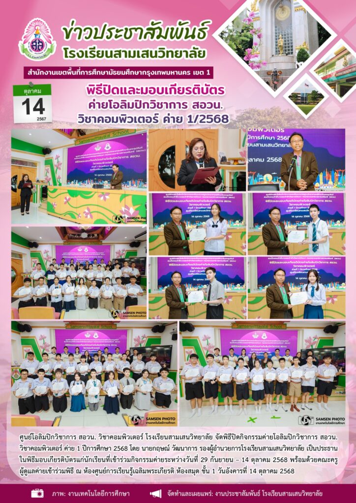 14 ตุลาคม 2568 พิธีปิดและมอบเกียรติบัตรค่ายโอลิมปิกวิชาการ สอวน. วิชาคอมพิวเตอร์ ค่าย 1/2568 ศูนย์โรงเรียนสามเสนวิทยาลัย17 ตุลาคม 2025Written by งานประชาสัมพันธ์