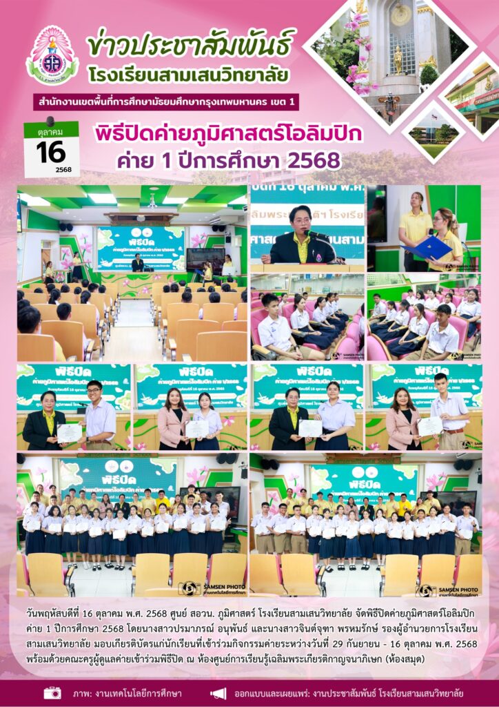 16 ตุลาคม 2568 พิธีปิดค่ายภูมิศาสตร์โอลิมปิก ค่าย 1 ปีการศึกษา 2568 ศูนย์โรงเรียนสามเสนวิทยาลัย17 ตุลาคม 2025Written by งานประชาสัมพันธ์
