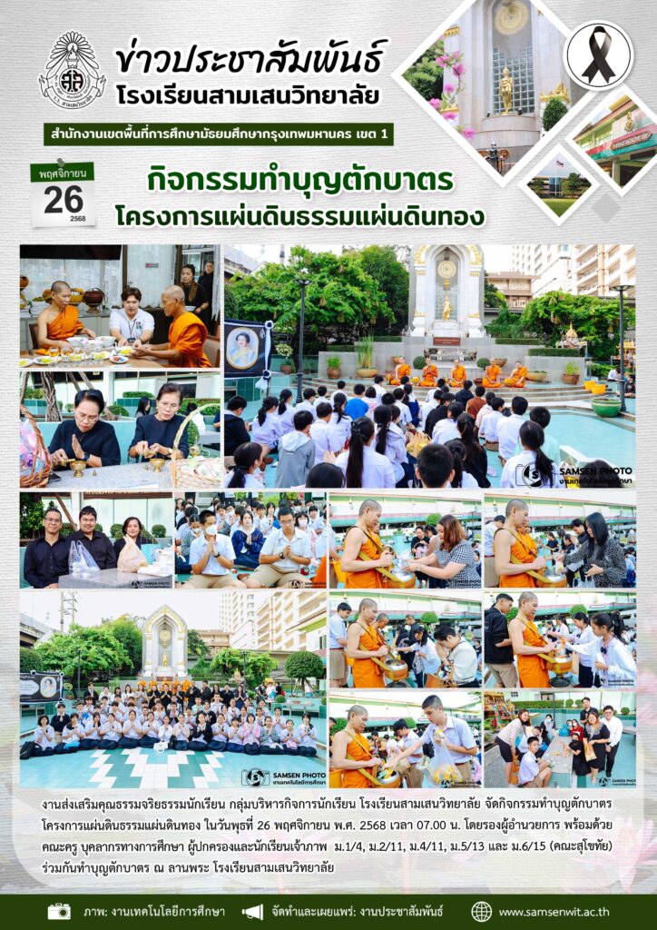 26 พฤศจิกายน 2568 กิจกรรมทำบุญตักบาตรโครงการแผ่นดินธรรมแผ่นดินทอง26 พฤศจิกายน 2025Written by งานประชาสัมพันธ์