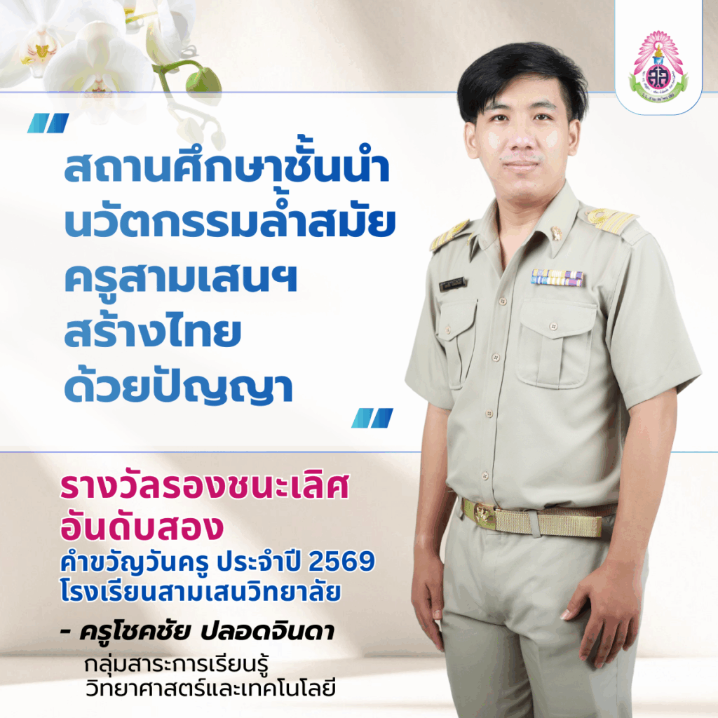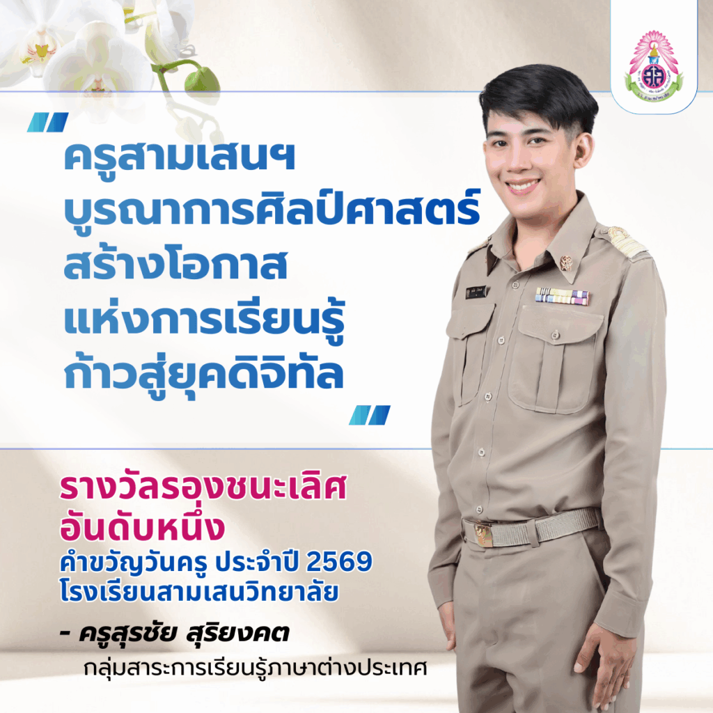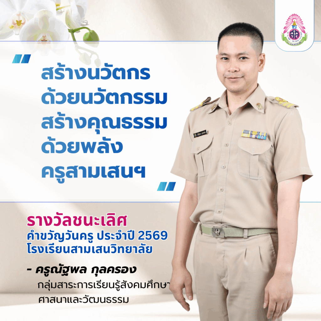 ประกาศผลการประกวดคำขวัญวันครู โรงเรียนสามเสนวิทยาลัย ประจำปี 25699 มกราคม 2026Written by งานประชาสัมพันธ์ ขอแสดงความยินดี กับคุณครูที่ได้รับการคัดเลือกจากการส่งคำขวัญวันครูเข้าประกวด ในกิจกรรมวันครูของโรงเรียนสามเสนวิทยาลัย ประจำปี 2569