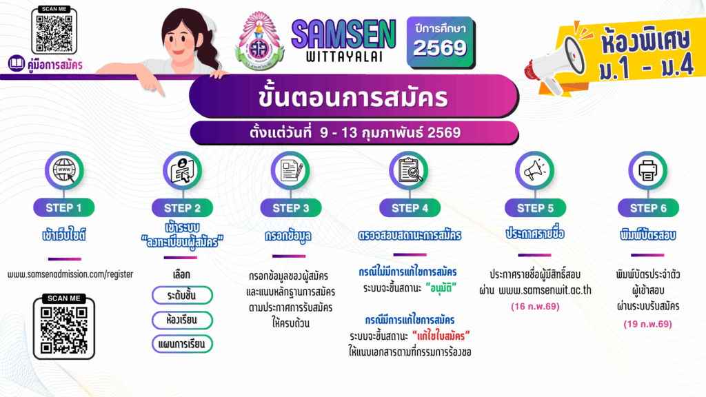 📝 ประกาศรับนักเรียนชั้นมัธยมศึกษาปีที่ 4 (ห้องเรียนพิเศษ) ปีการศึกษา 2569
