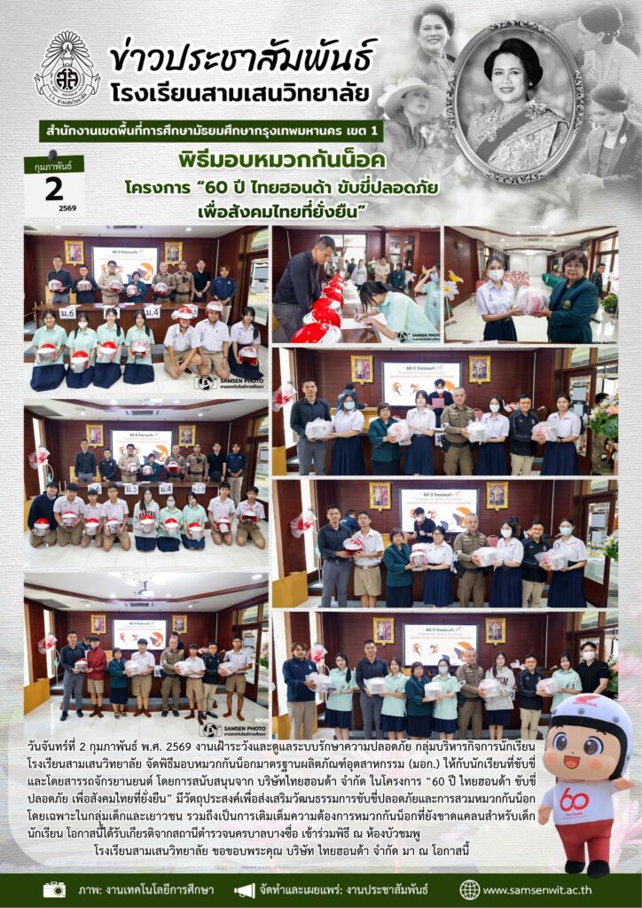 2 กุมภาพันธ์ 2569 พิธีมอบหมวกกันน็อค โครงการ “60 ปี ไทยฮอนด้า ขับขี่ปลอดภัย เพื่อสังคมไทยที่ยั่งยืน”2 กุมภาพันธ์ 2026Written by งานประชาสัมพันธ์