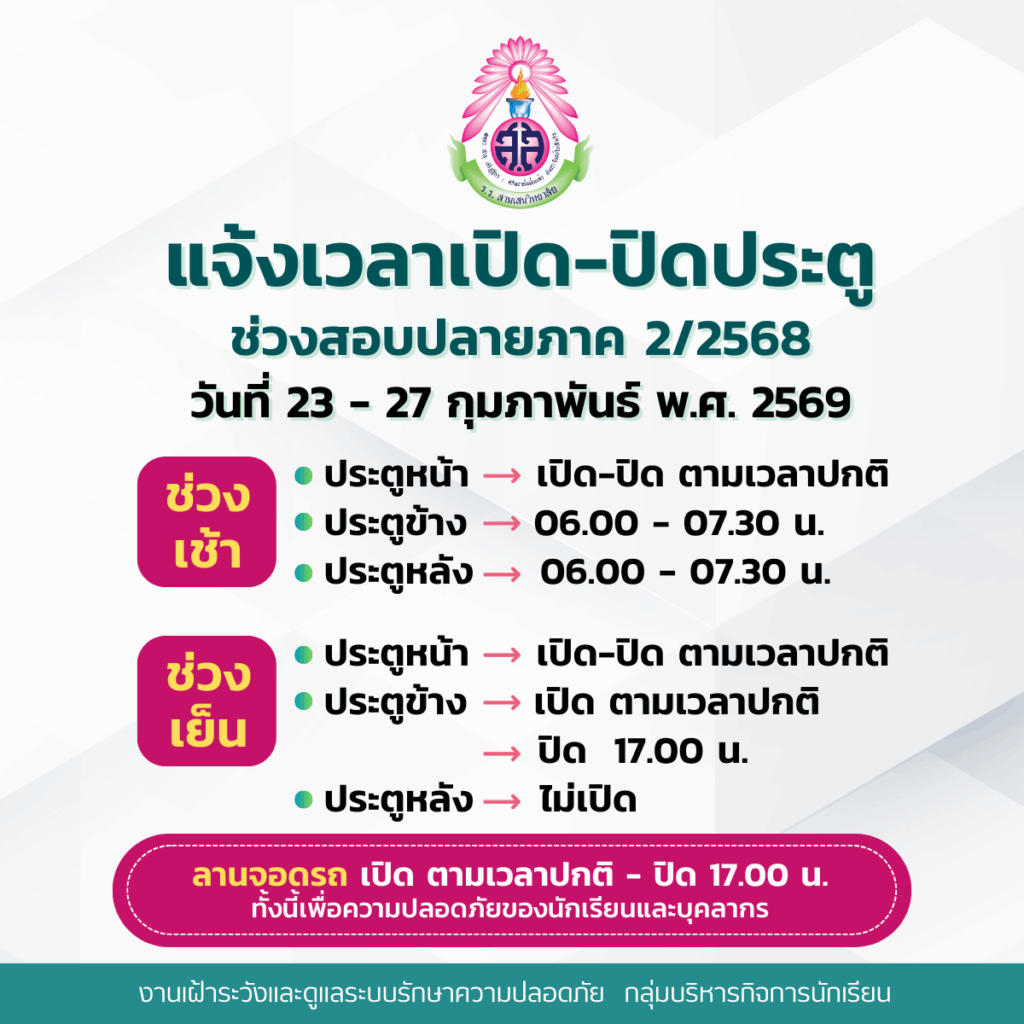 👉 ตารางสอบและห้องสอบ ม.1 – ม.6 (ห้องเรียนปกติ/ห้องเรียนพิเศษ)