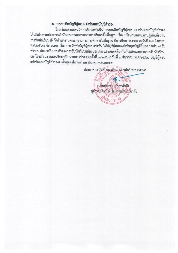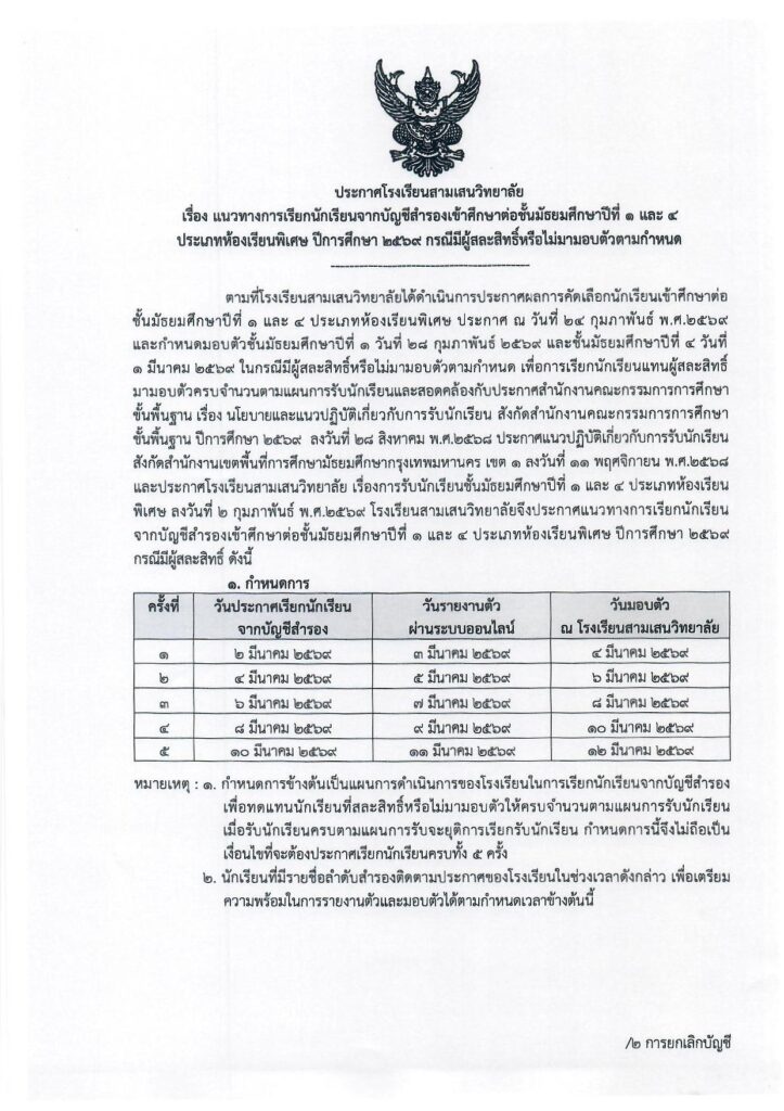 แนวทางการเรียกบัญชีสำรอง ม.1 และ 4 ห้องเรียนพิเศษ ปีการศึกษา 2569