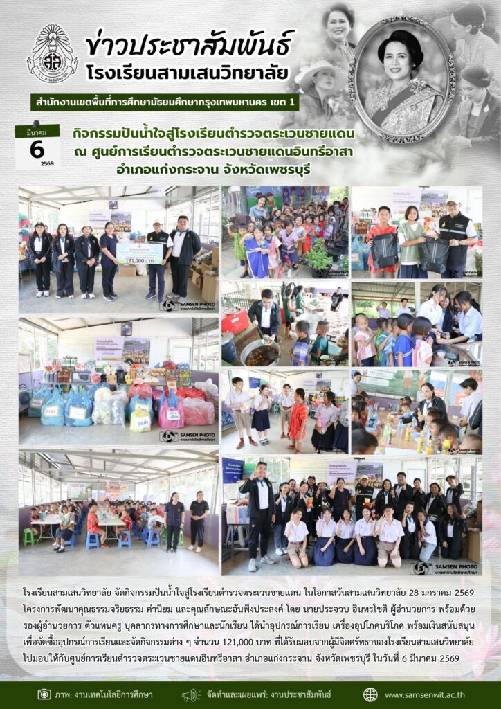 6 มีนาคม 2569 กิจกรรมปันน้ำใจสู่โรงเรียนตำรวจตระเวนชายแดน ณ ศูนย์การเรียนตำรวจตระเวนชายแดนอินทรีอาสา อำเภอแก่งกระจาน จังหวัดเพชรบุรี6 มีนาคม 2026Written by งานประชาสัมพันธ์