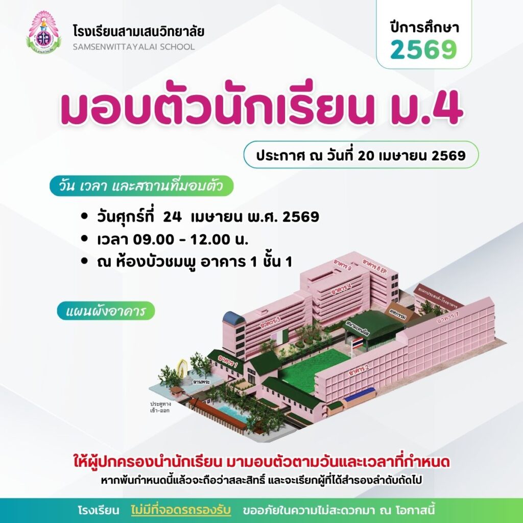 🟦 นักเรียนที่ไม่ประสงค์เข้าศึกษาต่อระดับชั้น ม.1 และ ม.4 โรงเรียนสามเสนวิทยาลัย ปีการศึกษา 2569 สามารถยื่นคำร้องขอสละสิทธิ์ทางอีเมล education@samsenwit.ac.th