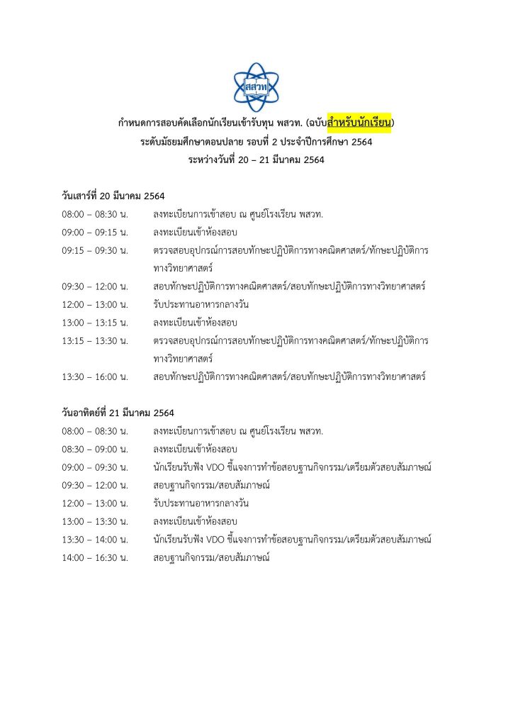 โครงการ พสวท. ศูนย์โรงเรียนสามเสนวิทยาลัย ประกาศรายชื่อผู้เข้าสอบเพื่อคัดเลือกเข้ารับทุน พสวท. ระดับมัธยมศึกษาตอนปลาย รอบที่ 2 กำหนดการสอบ และแนวปฏิบัติในการเข้าสอบ ระหว่างวันที่ 20 – 21 มีนาคม 256419 มีนาคม 2021Written by งานประชาสัมพันธ์