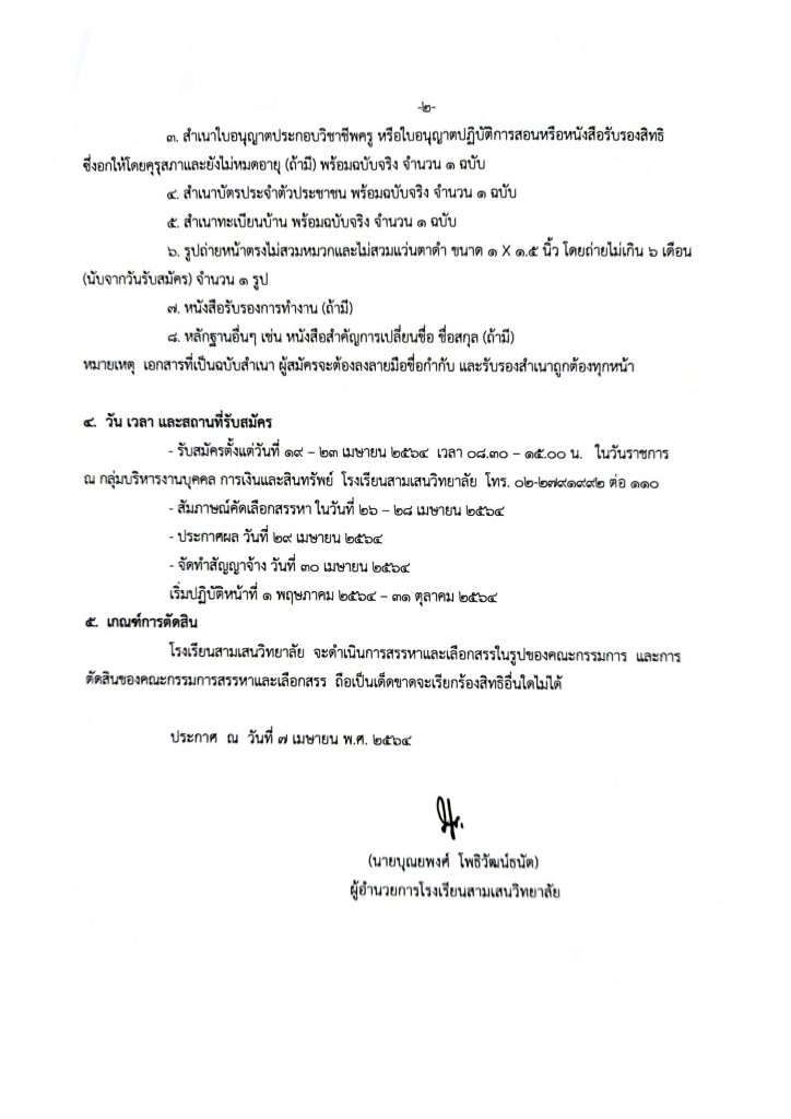 ประกาศโรงเรียนสามเสนวิทยาลัย เรื่อง ประกวดราคางานจ้างเหมาครูชาวต่างชาติ ปีการศึกษา 2564