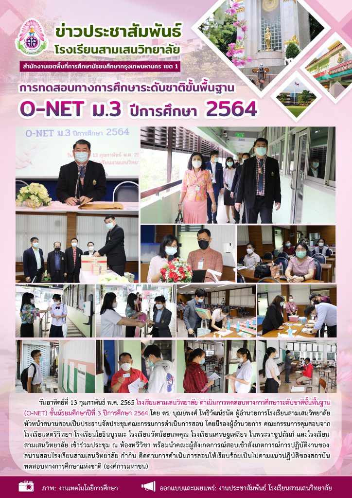 โรงเรียนสามเสนวิทยาลัย เป็นสนามทดสอบทางการศึกษาระดับชาติขั้นพื้นฐาน (O-NET) ม.3 ปีการศึกษา 256414 กุมภาพันธ์ 2022Written by งานประชาสัมพันธ์