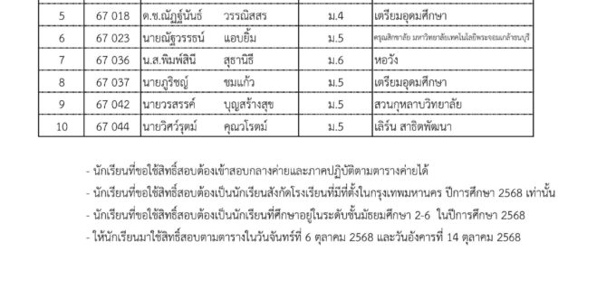 ประกาศ ผลการคัดเลือกนักเรียนเข้าโครงการ คอมพิวเตอร์โอลิมปิก สอวน. ค่าย 1 รุ่นที่ 26 ปีการศึกษา 2568 เขตกรุงเทพมหานคร 📥รายชื่อผู้ผ่านการคัดเลือกเข้าค่ายที่ 1 รุ่นที่ 26 ปีการศึกษา 2568 ท่านสามารถติดตามข่าวแต่ละศูนย์ได้จากเพจดังต่อไปนี้ ศูนย์โอลิมปิกวิชาการ สอวน. วิชาคอมพิวเตอร์ โรงเรียนสามเสนวิทยาลัย https://www.facebook.com/sscomposn และ https://www.samsenwit.ac.th/sscomposn ศูนย์โอลิมปิกวิชาการ สอวน. ค่าย 1 วิชาคอมพิวเตอร์ โรงเรียนสตรีศรีสุริโยทัย https://www.facebook.com/stposn1computer ศูนย์โอลิมปิกวิชาการ สอวน. ค่าย 1 วิชาคอมพิวเตอร์ โรงเรียนสตรีวัดมหาพฤฒาราม ในพระบรมราชินูปถัมภ์ https://www.facebook.com/profile.php?id=100085958932619 ศูนย์โอลิมปิกวิชาการ สอวน. วิชาคอมพิวเตอร์ โรงเรียนเทพศิรินทร์ https://www.facebook.com/dskmitlcomposn *สำหรับผู้ที่ผ่านการคัดเลือก เข้าศูนย์อบรมโรงเรียนเทพศิรินทร์ ให้ติดต่อช่อง ข้อความส่วนตัว โดยพิมพ์ลำดับที่ และเลขประจำตัวสอบ