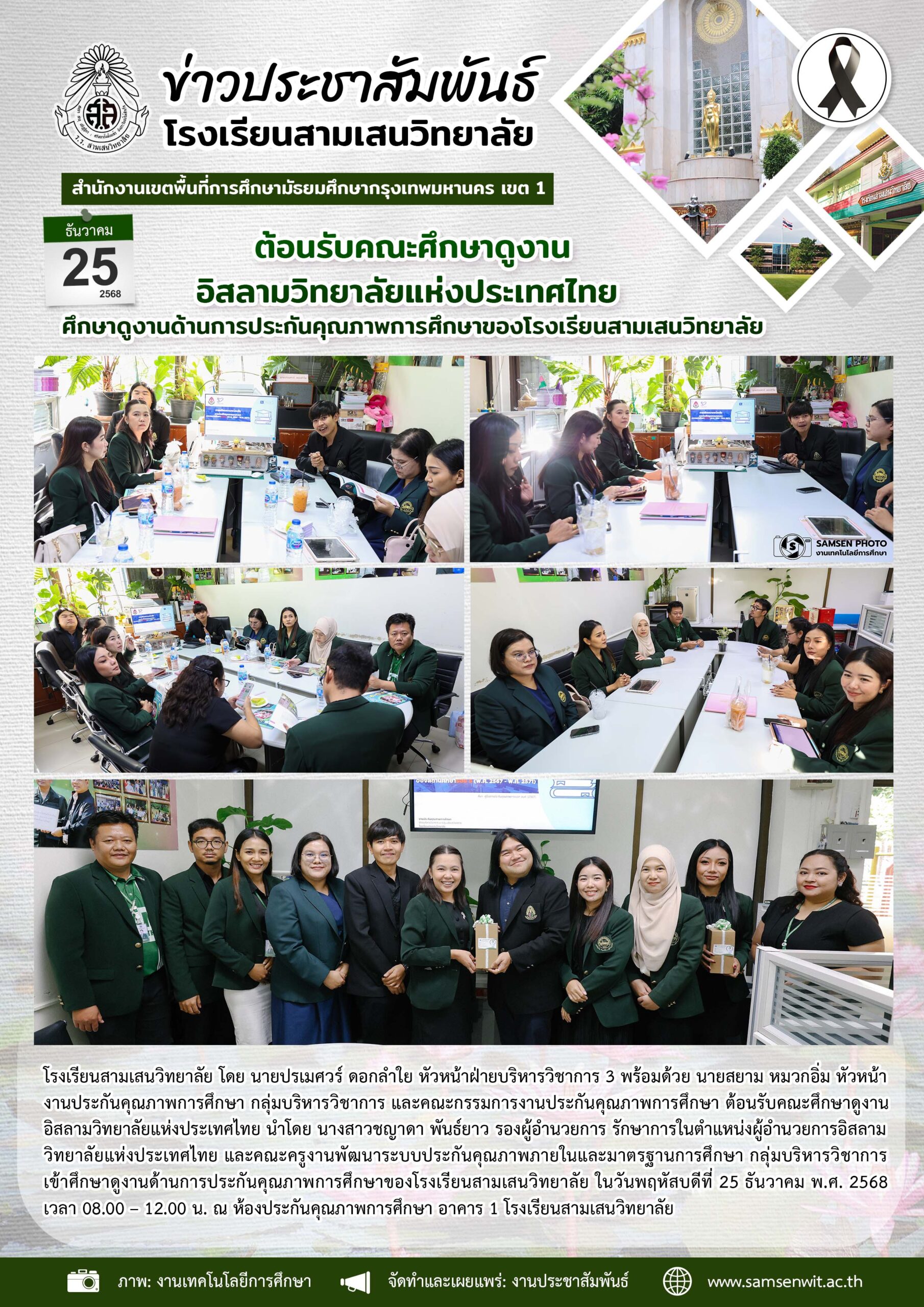 25 ธันวาคม 2568 โรงเรียนสามเสนวิทยาลัย ต้อนรับคณะศึกษาดูงานอิสลามวิทยาลัยแห่งประเทศไทย ศึกษาดูงานด้านการประกันคุณภาพการศึกษาของโรงเรียนสามเสนวิทยาลัย