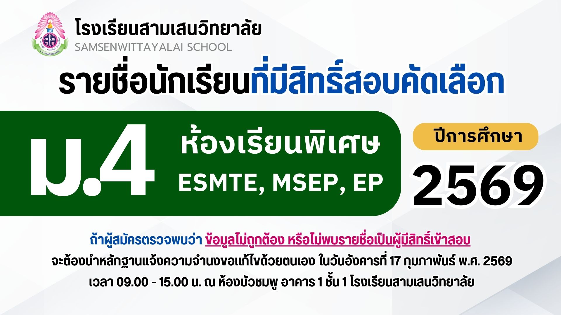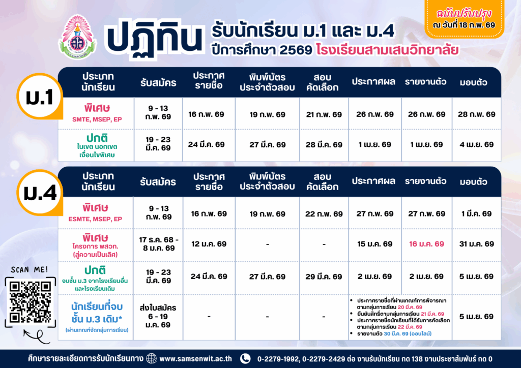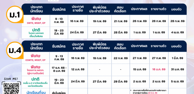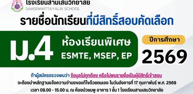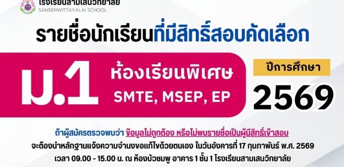 นักเรียนชั้น ม.3 และ ม.6 ตรวจสอบรายชื่อได้ที่ ป้ายประชาสัมพันธ์ หน้าห้องกิจการนักเรียน