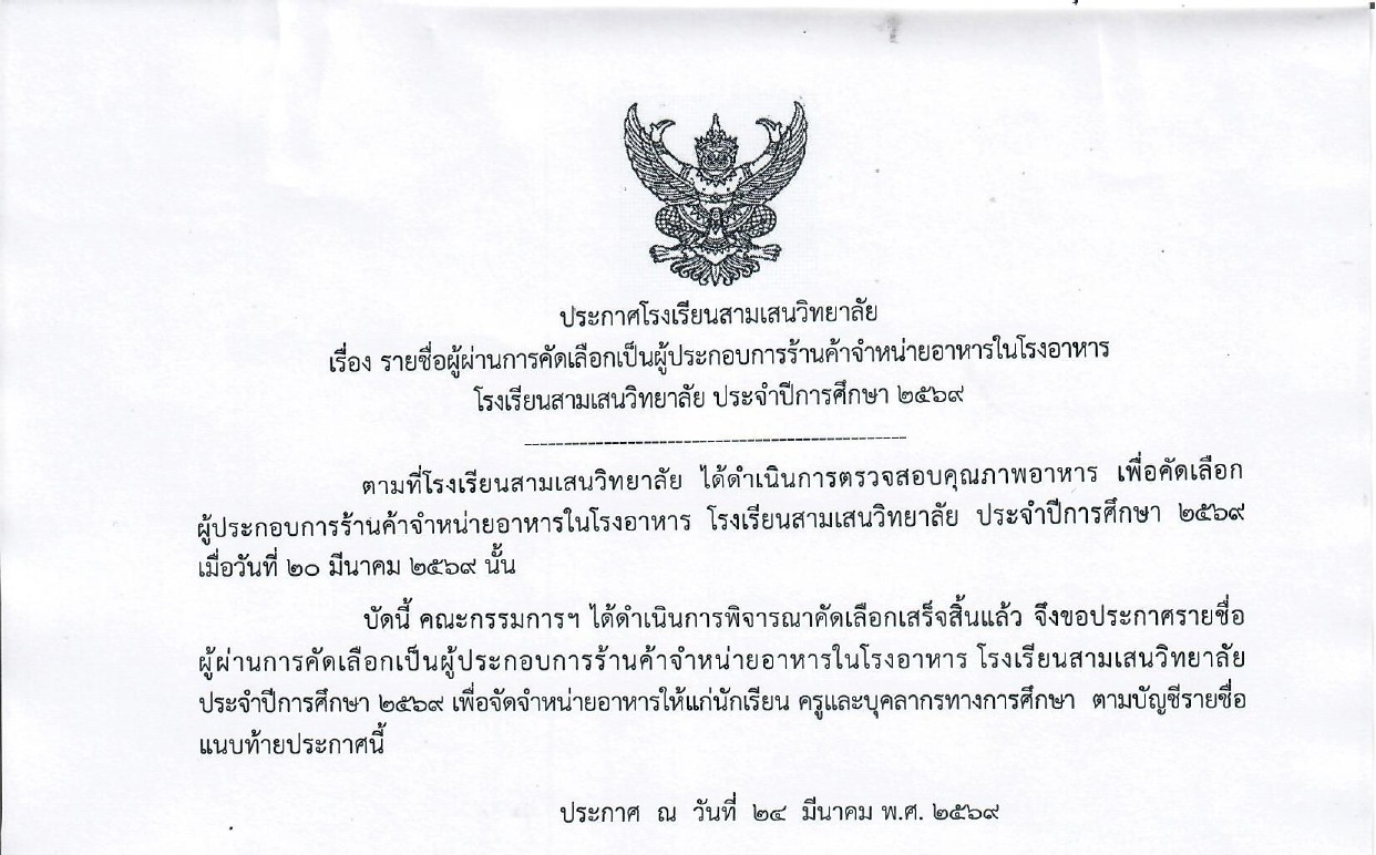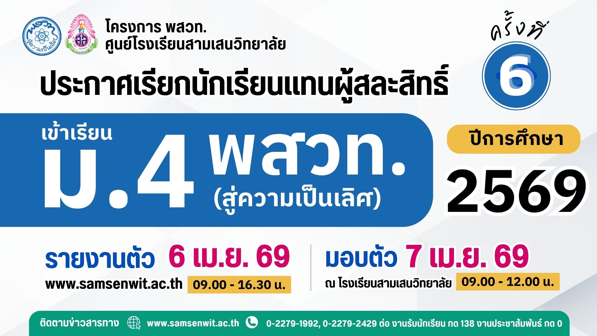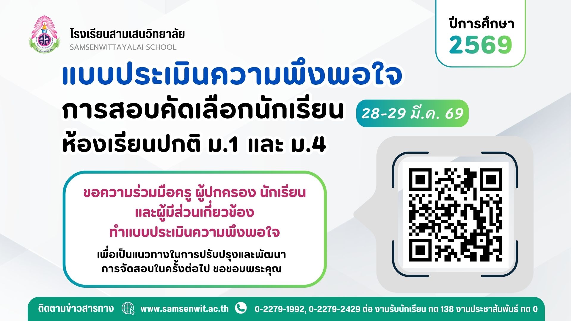 🟦 นักเรียนที่ไม่ประสงค์เข้าศึกษาต่อระดับชั้น ม.1 และ ม.4 โรงเรียนสามเสนวิทยาลัย ปีการศึกษา 2569 สามารถยื่นคำร้องขอสละสิทธิ์ทางอีเมล education@samsenwit.ac.th
