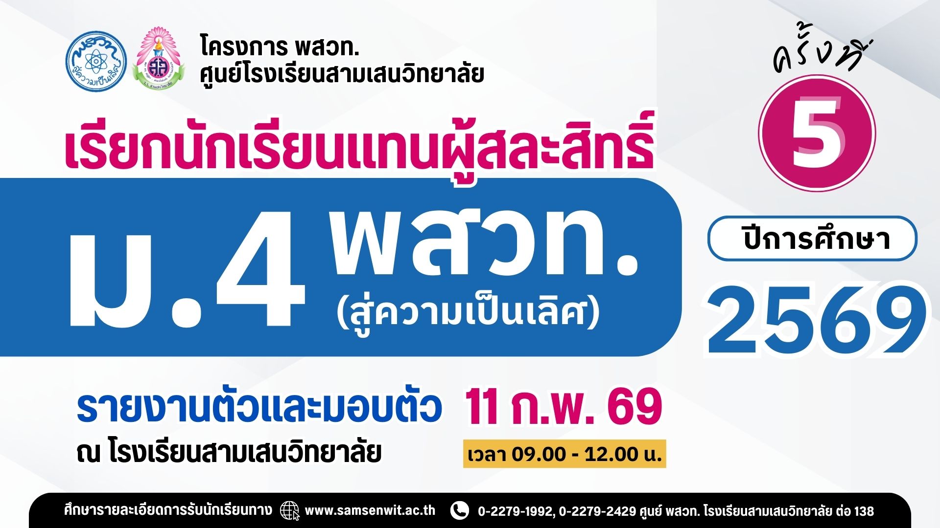 ขอให้นักเรียนที่เข้าร่วมกิจกรรมที่มีคะแนนความประพฤติ ต่ำกว่า 80 คะแนน ดาวน์โหลด แบบรายงานการขอปรับแก้ไขคะแนนความประพฤติ (กรณีเป็นอาสาสมัครในการจัดกิจกรรม เนื่องในวันสามเสนนิทรรศน์ 2026) พร้อมกรอกข้อมูลให้ครบถ้วน และให้นักเรียนนำส่งที่กลุ่มบริหารกิจการนักเรียนภายในวันที่ 27 กุมภาพันธ์ 2569