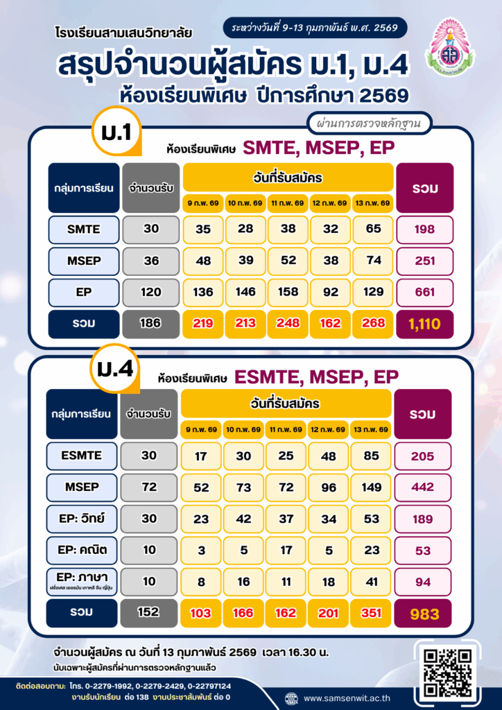 👉 ตารางสอบและห้องสอบ ม.1 – ม.6 (ห้องเรียนปกติ/ห้องเรียนพิเศษ)