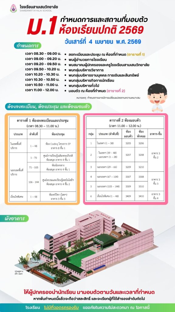 ลิงก์ดาวน์โหลดเอกสารมอบตัว **เฉพาะนักเรียนเงื่อนไขพิเศษ ม.1 ** (ประกาศ ณ วันที่ 31 มีนาคม 2569)