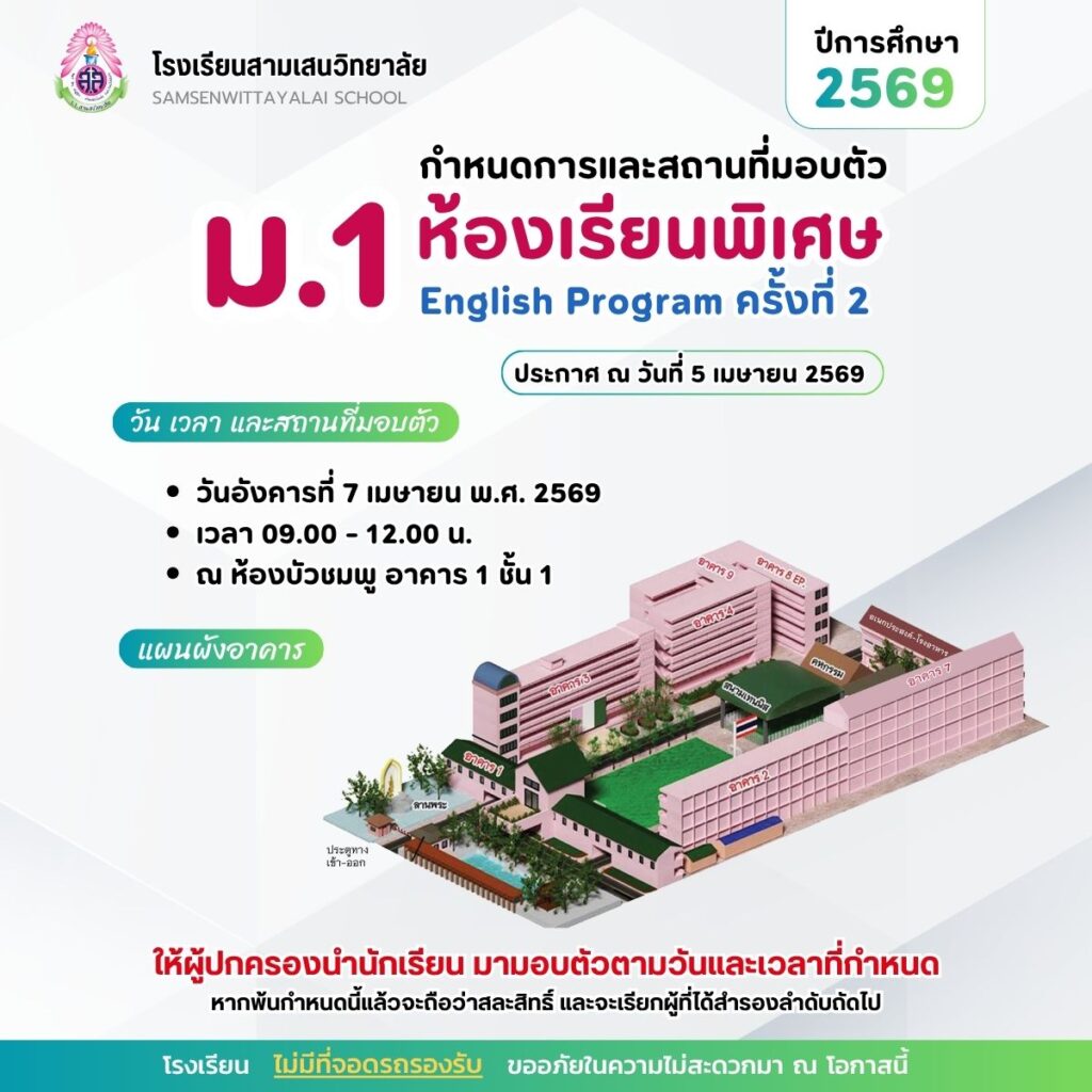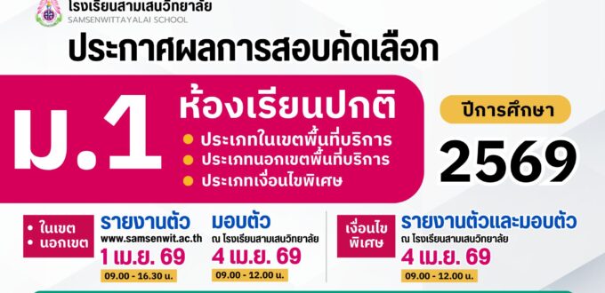 🟦 นักเรียนที่ไม่ประสงค์เข้าศึกษาต่อระดับชั้น ม.1 และ ม.4 โรงเรียนสามเสนวิทยาลัย ปีการศึกษา 2569 สามารถยื่นคำร้องขอสละสิทธิ์ทางอีเมล education@samsenwit.ac.th