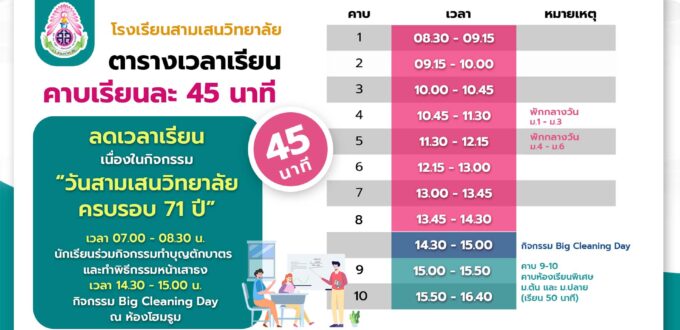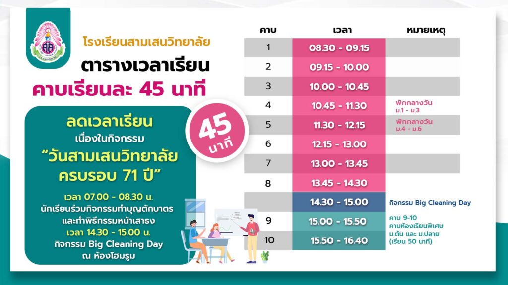 ⏰ 08.30 – 14.30 น. เรียนคาบ 1-8