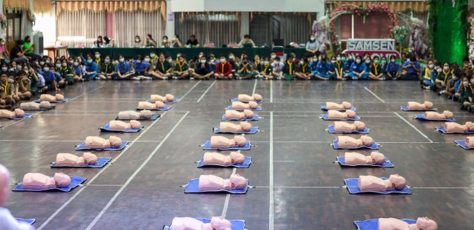 หลักสูตรการฝึกอบรม การช่วยฟื้นคืนชีพขั้นพื้นฐาน CPR Training ชั้นมัธยมศึกษาปีที่ 1 โดนมูลนิธิเส้นด้าย วันจันทร์ที่ 29 สิงหาคม 2566