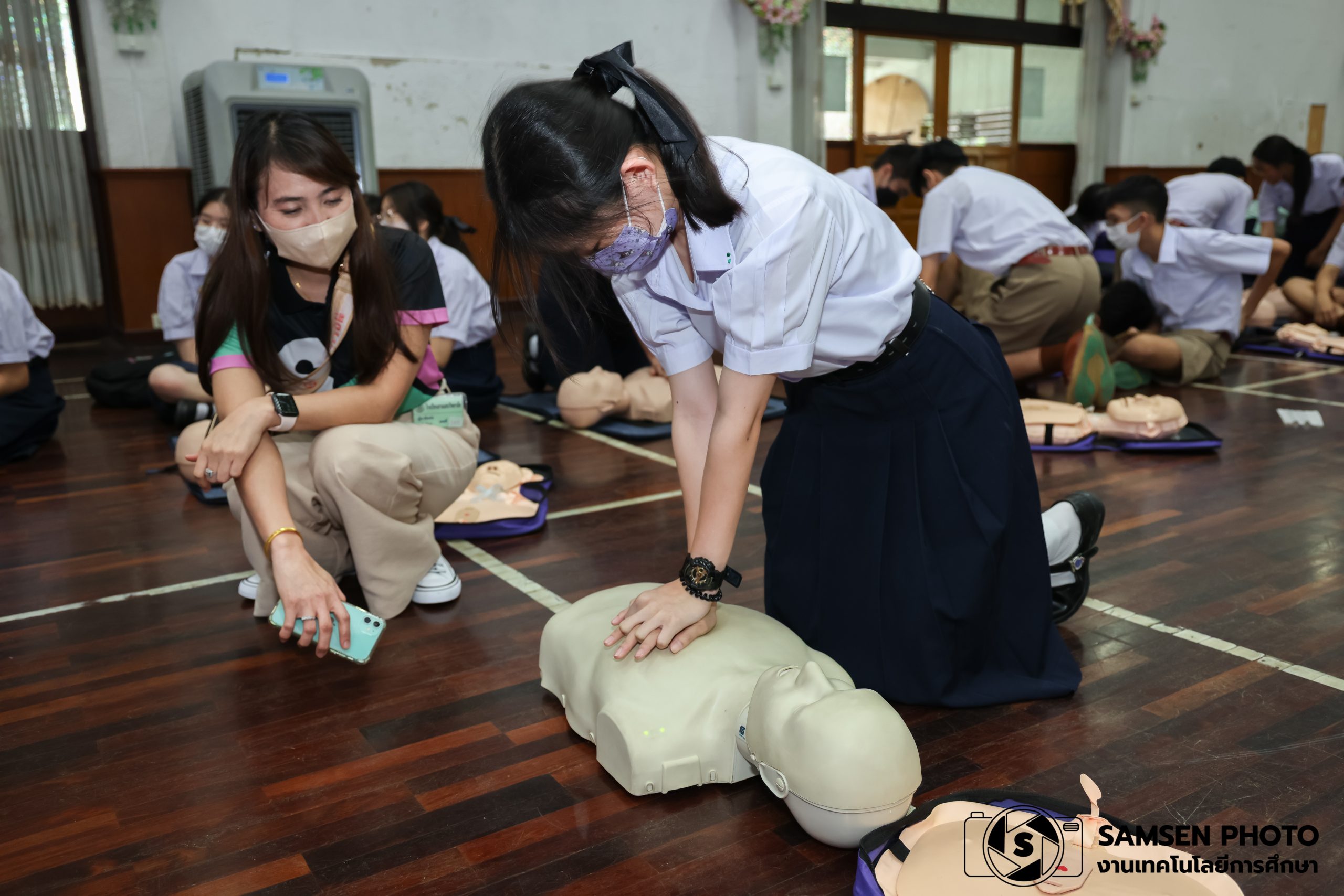 กิจกรรมการให้ความรู้ การช่วยฟื้นคืนชีพพื้นฐาน Basic Life Support BLS & AED กับ นักเรียนชั้นมัธยมศึกษาปีที่ 5 วันศุกร์ที่ 7 กรกฎาคม 2566