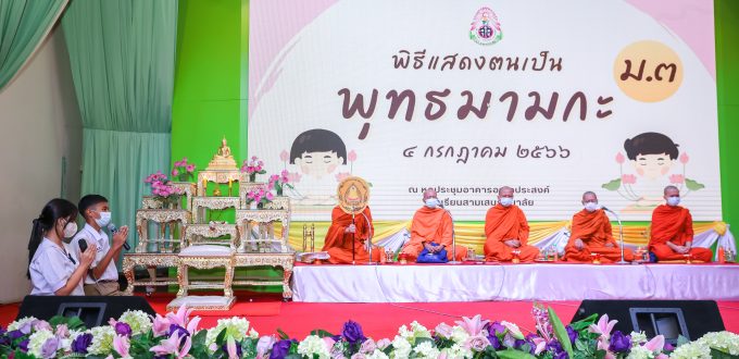 พิธีแสดงตนเป็นพุทธมามกะ ชั้นมัธยมศึกษาปีที่ 3 วันอังคารที่ 4 กรกฏาคม 2566