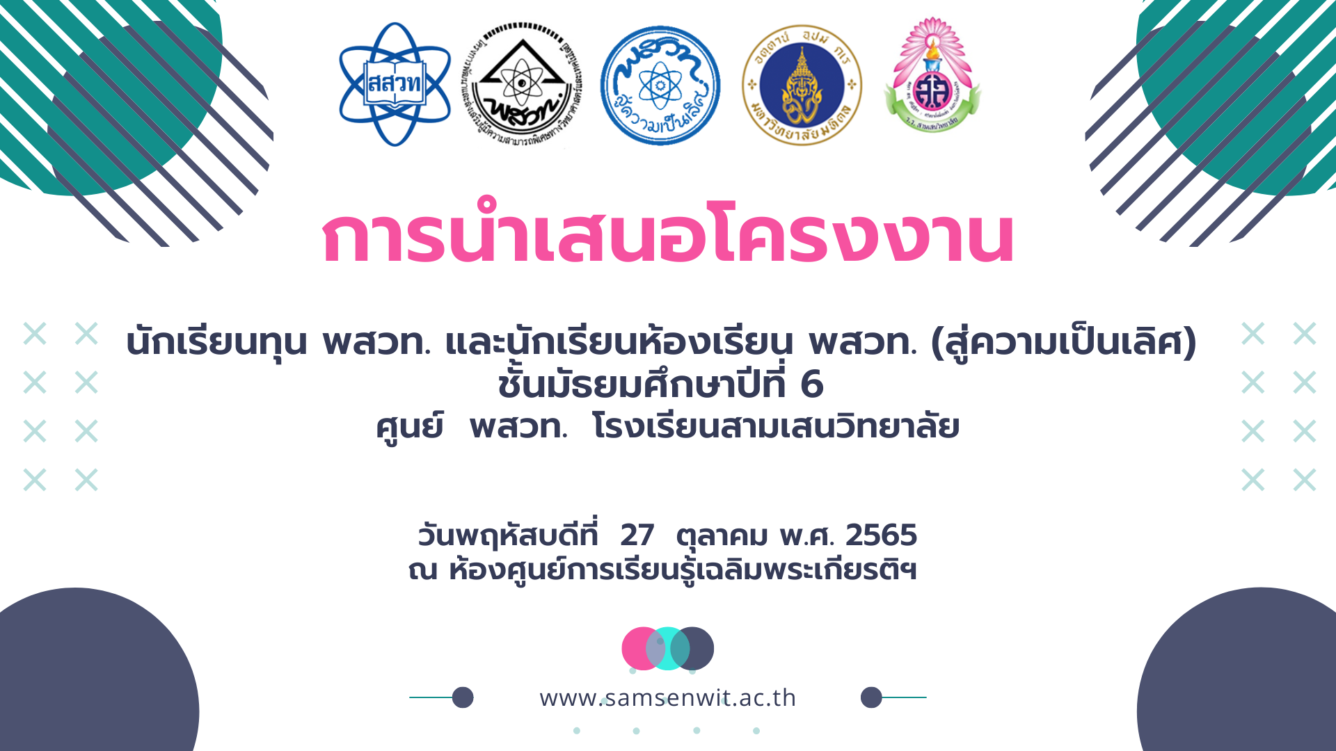 การนำเสนอโครงงานนักเรียนทุน พสวท. และนักเรียนห้องเรียน พสวท.(สู่ความเป็นเลิศ) ชั้นม.6 วันพฤหัสบดีที่ 27 ตุลาคม 2565