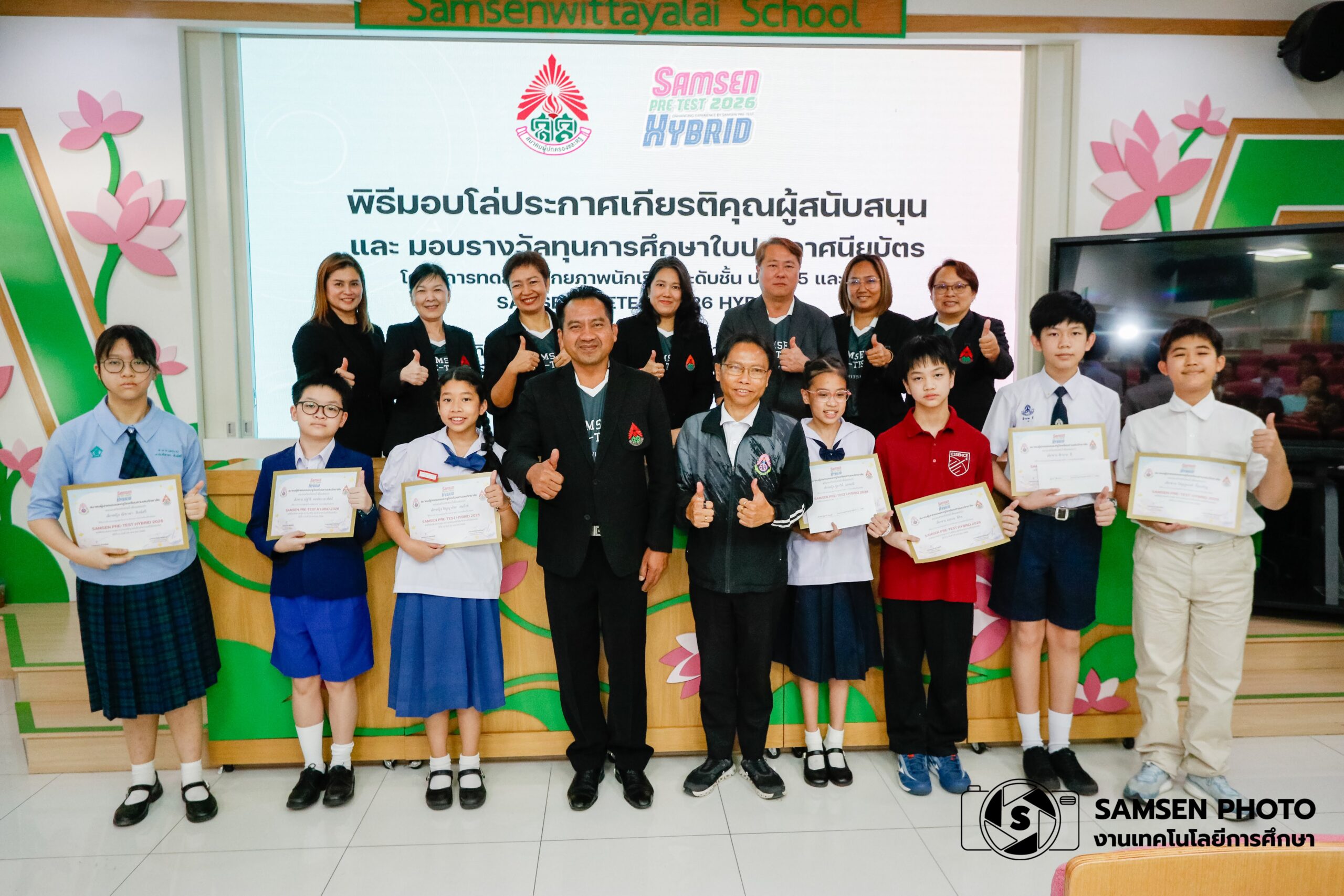 พิธีมอบโล่ประกาศเกียรติคุณผู้สนับสนุนและมอบรางวัลทุนการศึกษาในประกาศนียบัตร โครงการทดสอบศักยภาพนักเรียนระดับชั้น ป.4 ป.5 และป.6 SAMSENPRETET 2026 HYBRID วันอาิทตย์ที่ 25 มกราคม 2569