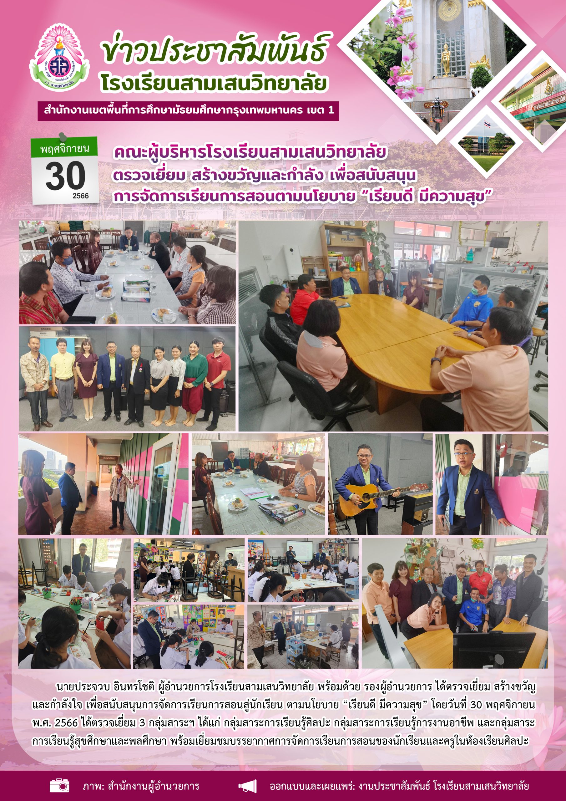 30 พฤศจิกายน 2566 คณะผู้บริหารโรงเรียนสามเสนวิทยาลัยตรวจเยี่ยม สร้างขวัญและกำลัง เพื่อสนับสนุนการจัดการเรียนการสอนตามนโยบาย “เรียนดี มีความสุข”