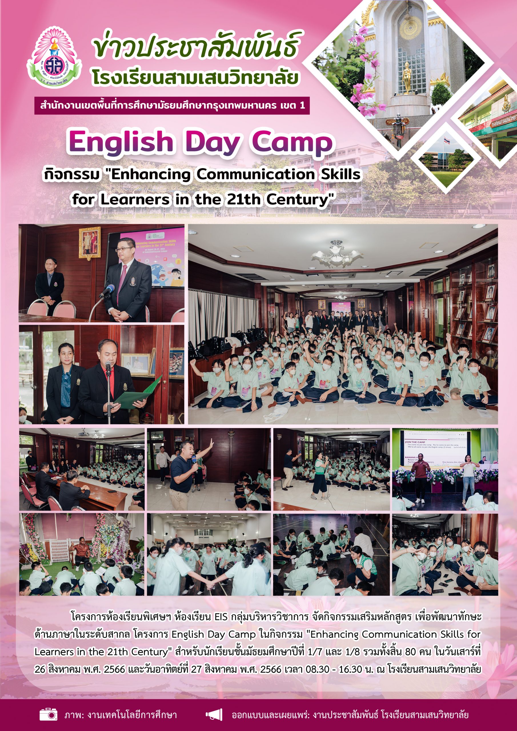 27-28 สิงหาคม 2566 English Day Camp กิจกรรม “Enhancing Communication Skills for Learners in the 21th Century” สำหรับนักเรียนชั้นมัธยมศึกษาปีที่ 1/7 และ 1/8