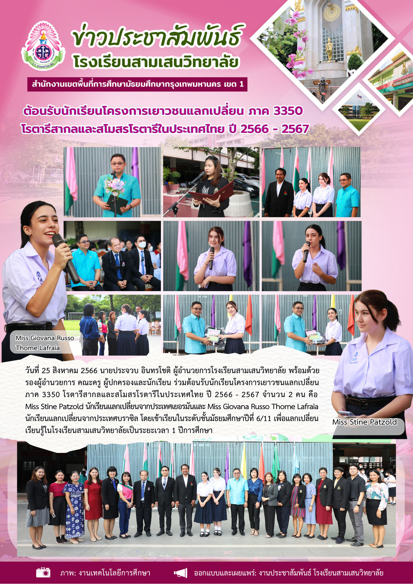 25 สิงหาคม 2566 ต้อนรับนักเรียนโครงการเยาวชนแลกเปลี่ยน ภาค 3350 โรตารีสากลและสโมสรโรตารีในประเทศไทย ปี 2566 – 2567