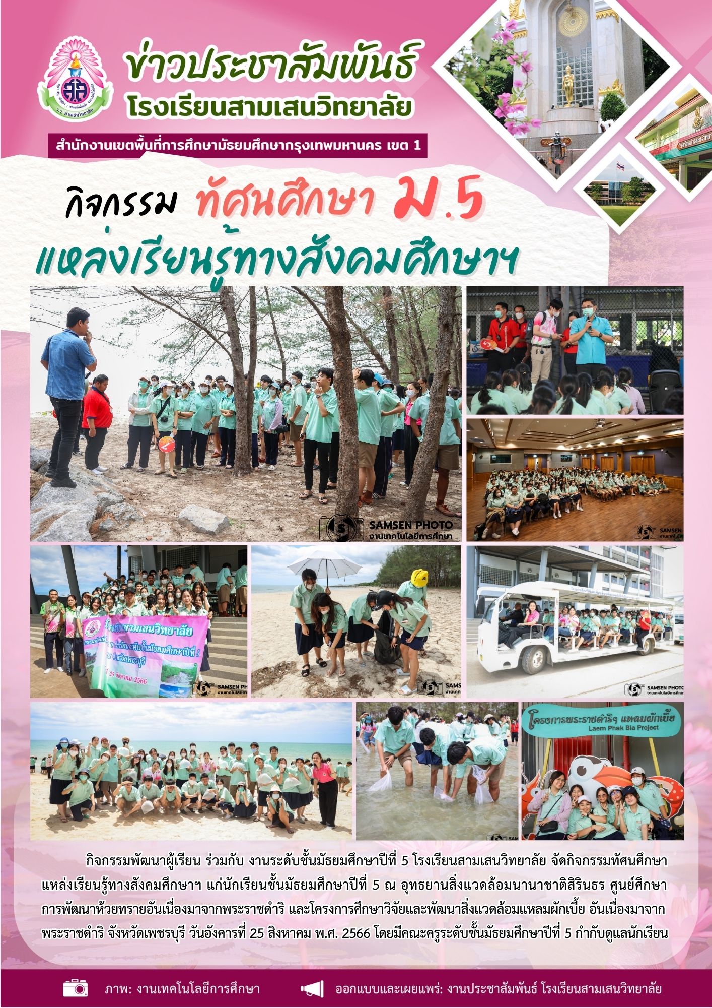 25 สิงหาคม 2566 กิจกรรมทัศนศึกษาแหล่งเรียนรู้ทางสังคมศึกษาฯ ระดับชั้นมัธยมศึกษาปีที่ 5 ณ จังหวัดเพชรบุรี