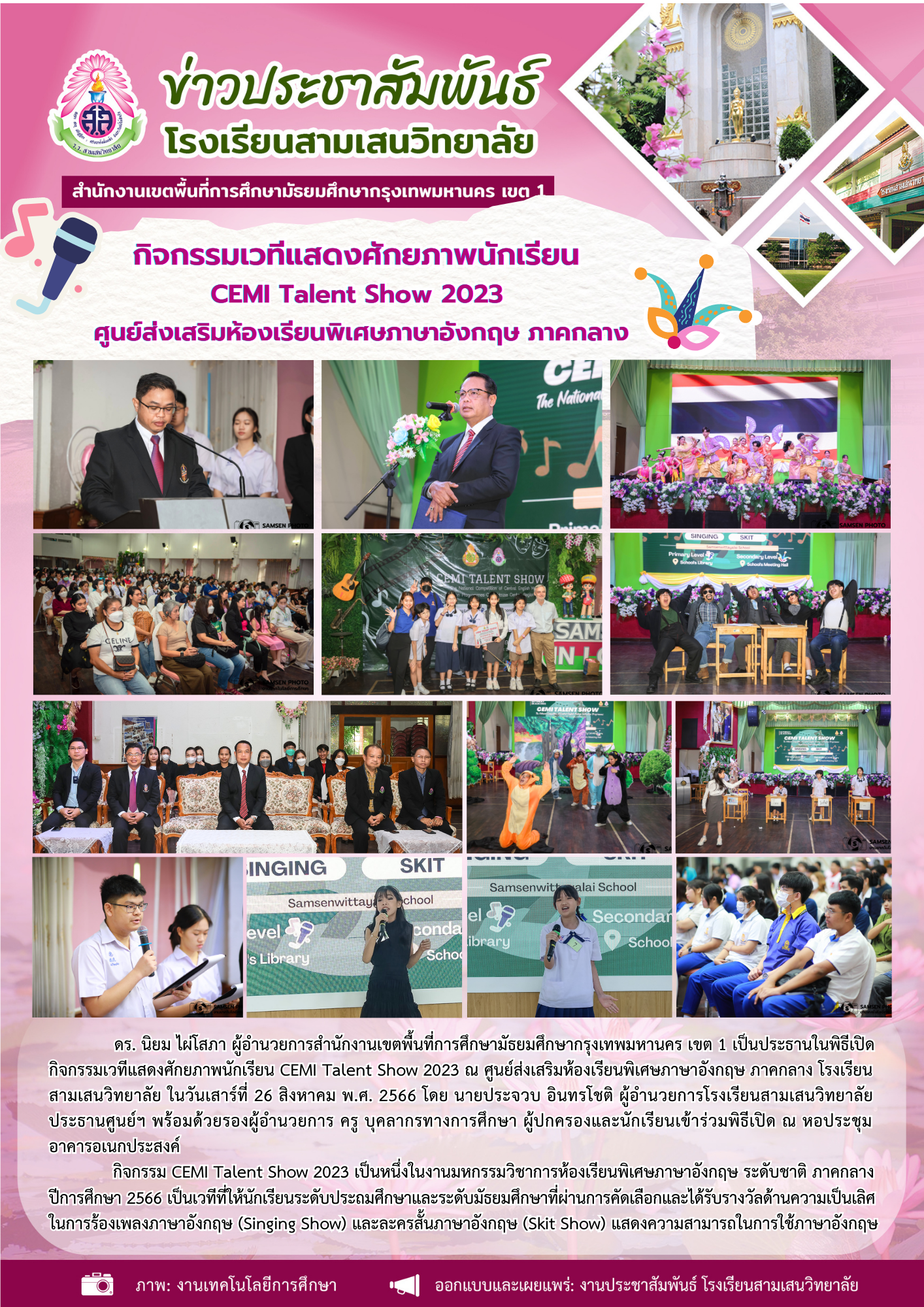 26 สิงหาคม 2566 กิจกรรมเวทีแสดงศักยภาพนักเรียน CEMI Talent Show 2023 ศูนย์ส่งเสริมห้องเรียนพิเศษภาษาอังกฤษ ภาคกลาง โรงเรียนสามเสนวิทยาลัย