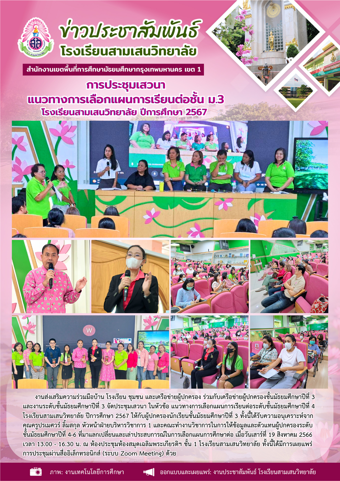 19 สิงหาคม 2566 การประชุมเสวนา แนวทางการเลือกแผนการเรียนต่อชั้น ม.3 โรงเรียนสามเสนวิทยาลัย ปีการศึกษา 2567