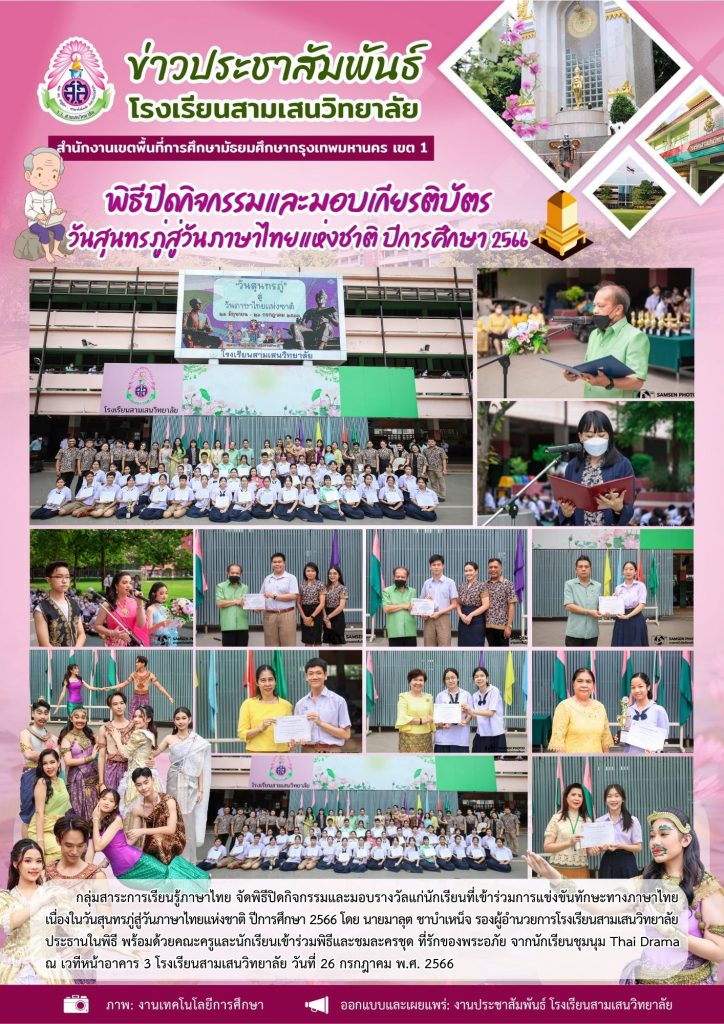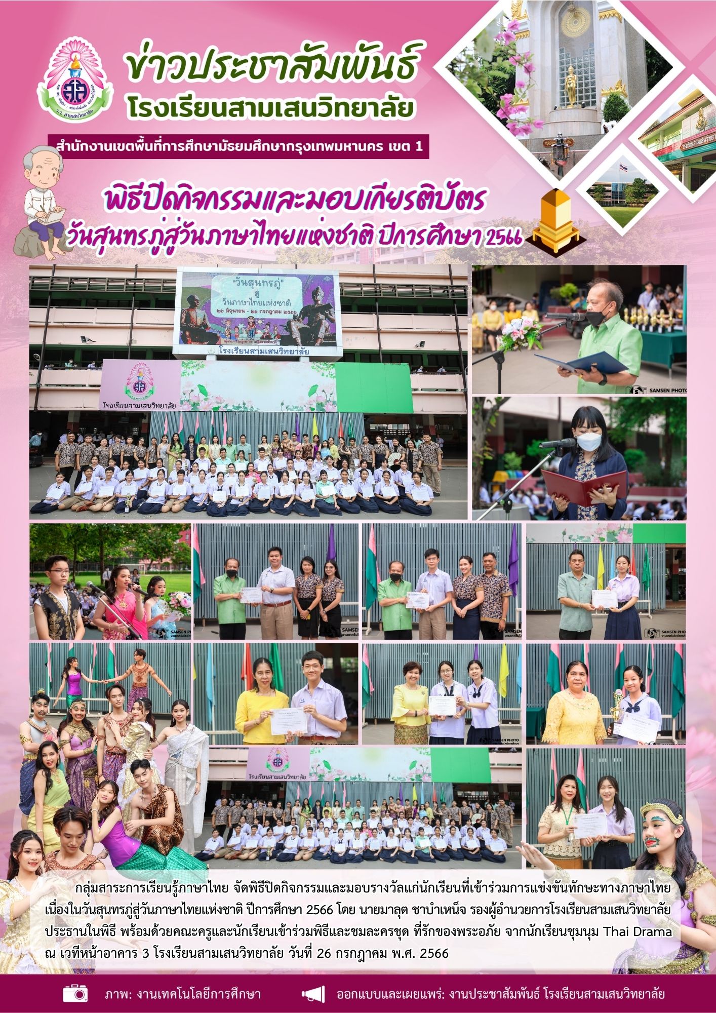 26 กรกฎาคม 2566 พิธีปิดกิจกรรมและมอบเกียรติบัตร “วันสุนทรภู่สู่วันภาษาไทยแห่งชาติ” ปีการศึกษา 2566 โดย กลุ่มสาระการเรียนรู้ภาษาไทย
