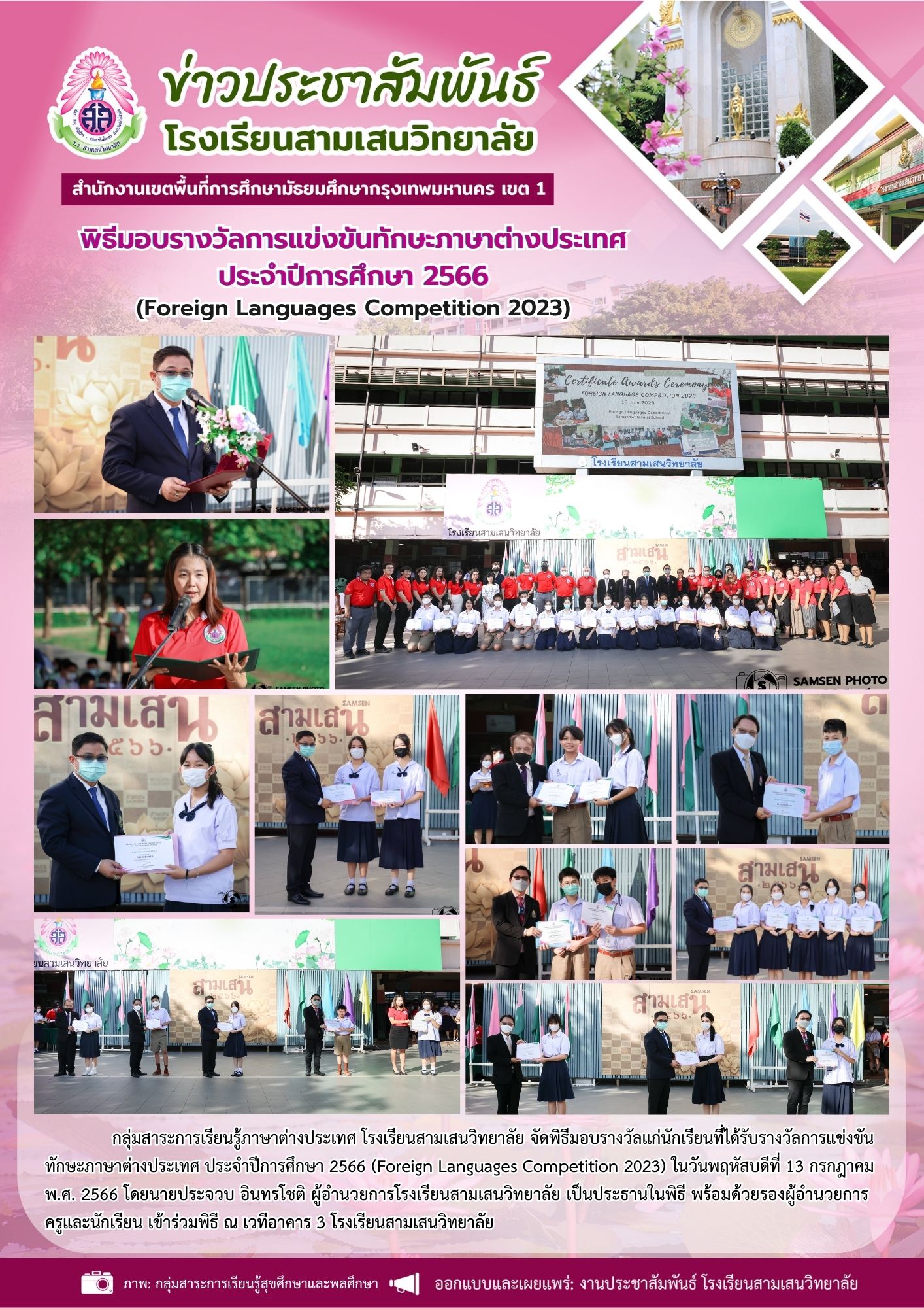 13 กรกฎาคม 2566 พิธีมอบรางวัลการแข่งขันทักษะภาษาต่างประเทศ ประจำปีการศึกษา 2566 (Foreign Languages Competition 2023)