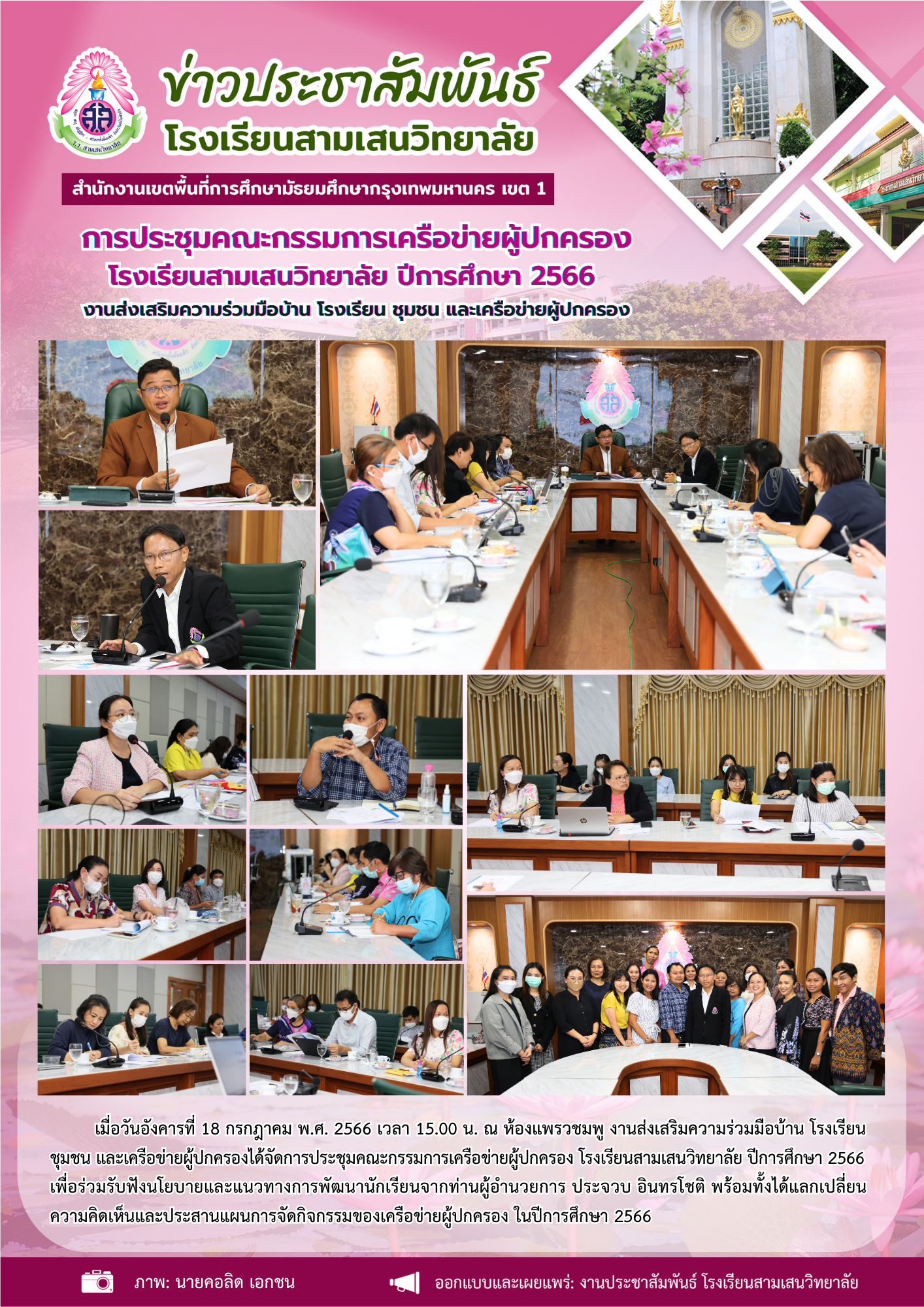 18 กรกฎาคม 2566 การประชุมคณะกรรมการเครือข่ายผู้ปกครอง โรงเรียนสามเสนวิทยาลัย ปีการศึกษา 2566 งานส่งเสริมความร่วมมือบ้าน โรงเรียน ชุมชน และเครือข่ายผู้ปกครอง