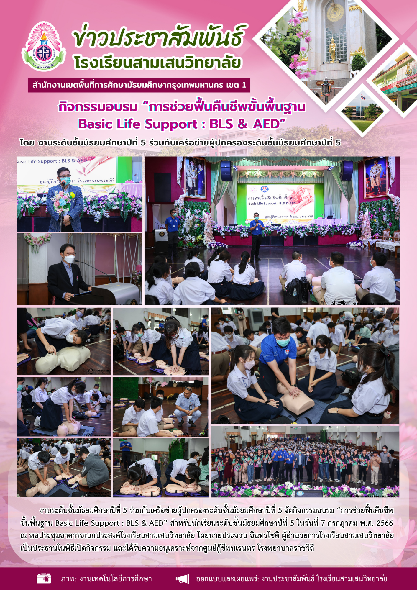 7 กรกฎาคม 2566 กิจกรรมอบรม “การช่วยฟื้นคืนชีพขั้นพื้นฐาน Basic Life Support : BLS & AED” โดย งานระดับชั้นมัธยมศึกษาปีที่ 5 ร่วมกับเครือข่ายผู้ปกครองระดับชั้นมัธยมศึกษาปีที่ 5