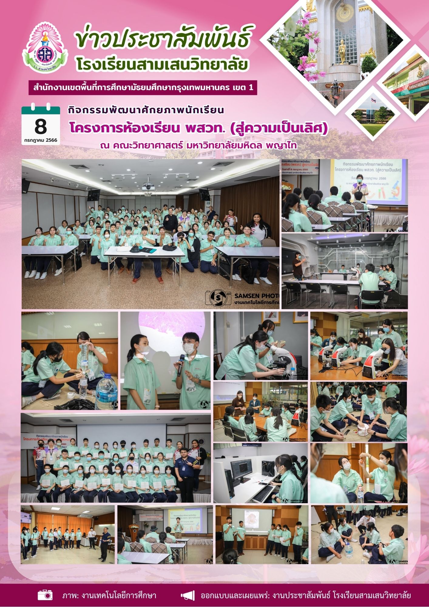 8 กรกฎาคม 2566 กิจกรรมพัฒนาศักยภาพนักเรียน โครงการห้องเรียน พสวท. (สู่ความเป็นเลิศ) ณ คณะวิทยาศาสตร์ มหาวิทยาลัยมหิดล พญาไท