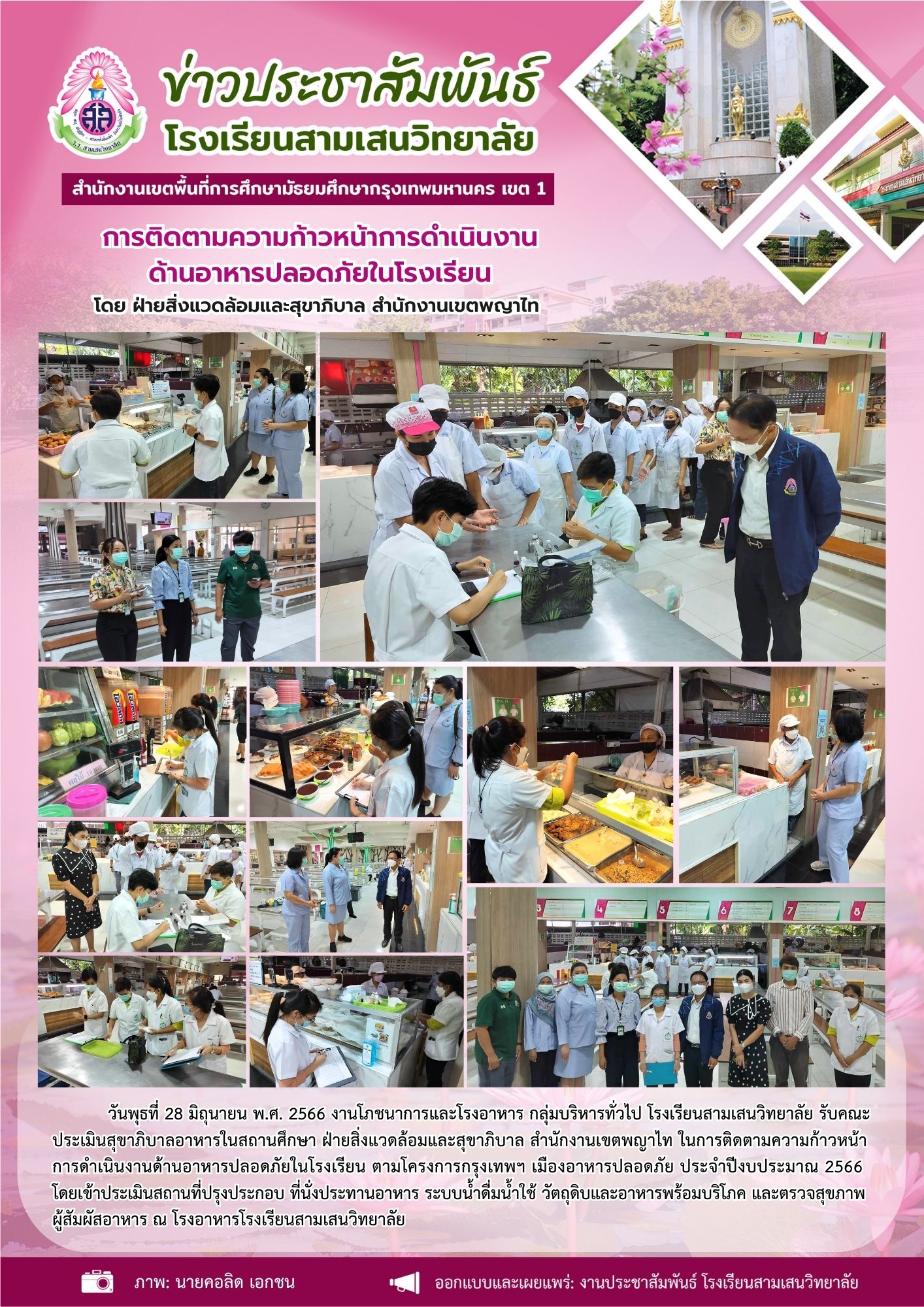 28 มิถุนายน 2566 การติดตามความก้าวหน้าการดำเนินงาน ด้านอาหารปลอดภัยในโรงเรียน โดย ฝ่ายสิ่งแวดล้อมและสุขาภิบาล สำนักงานเขตพญาไท
