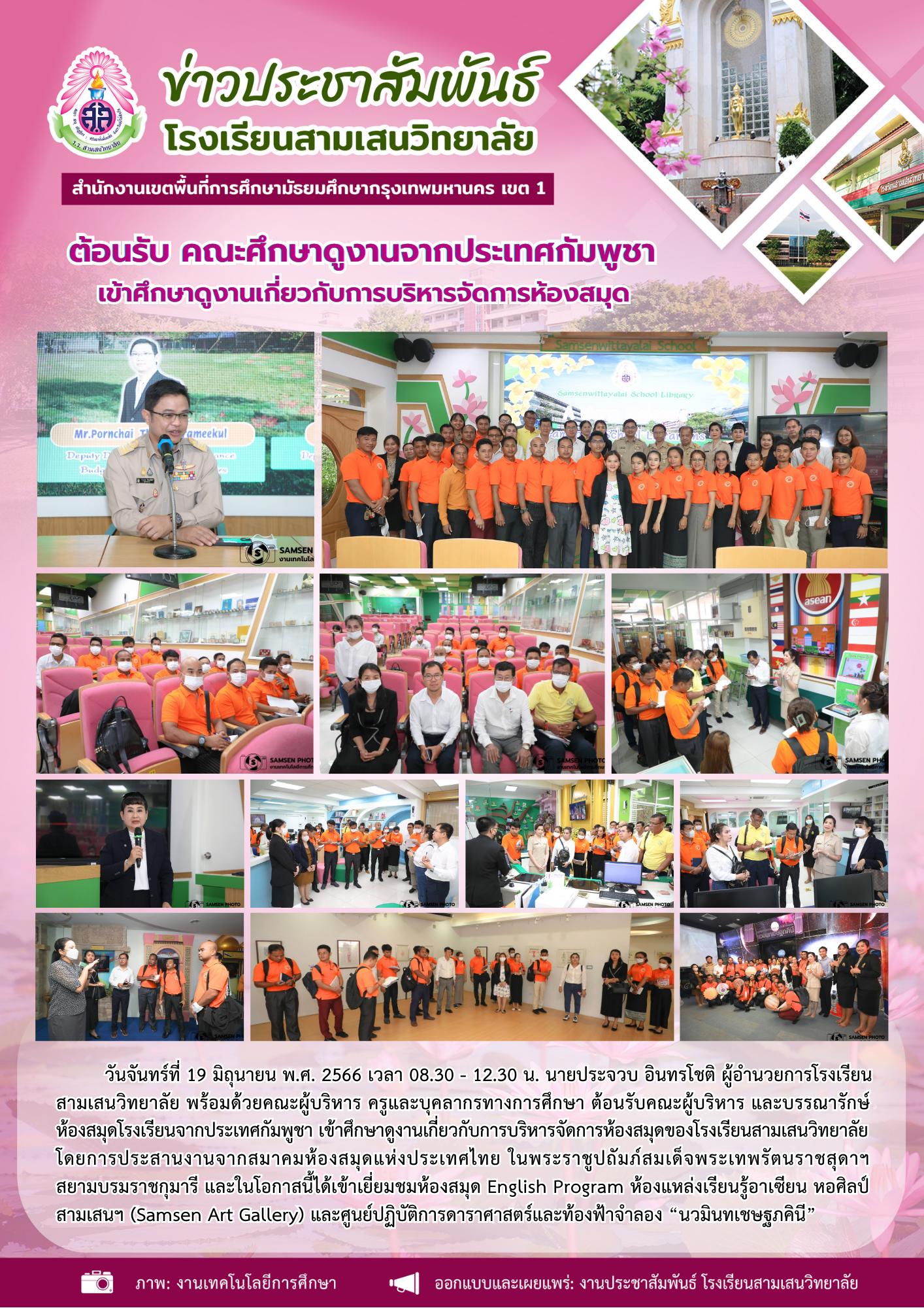 19 มิถุนายน 2566 ต้อนรับ คณะศึกษาดูงานจากประเทศกัมพูชา เข้าศึกษาดูงานเกี่ยวกับการบริหารจัดการห้องสมุด