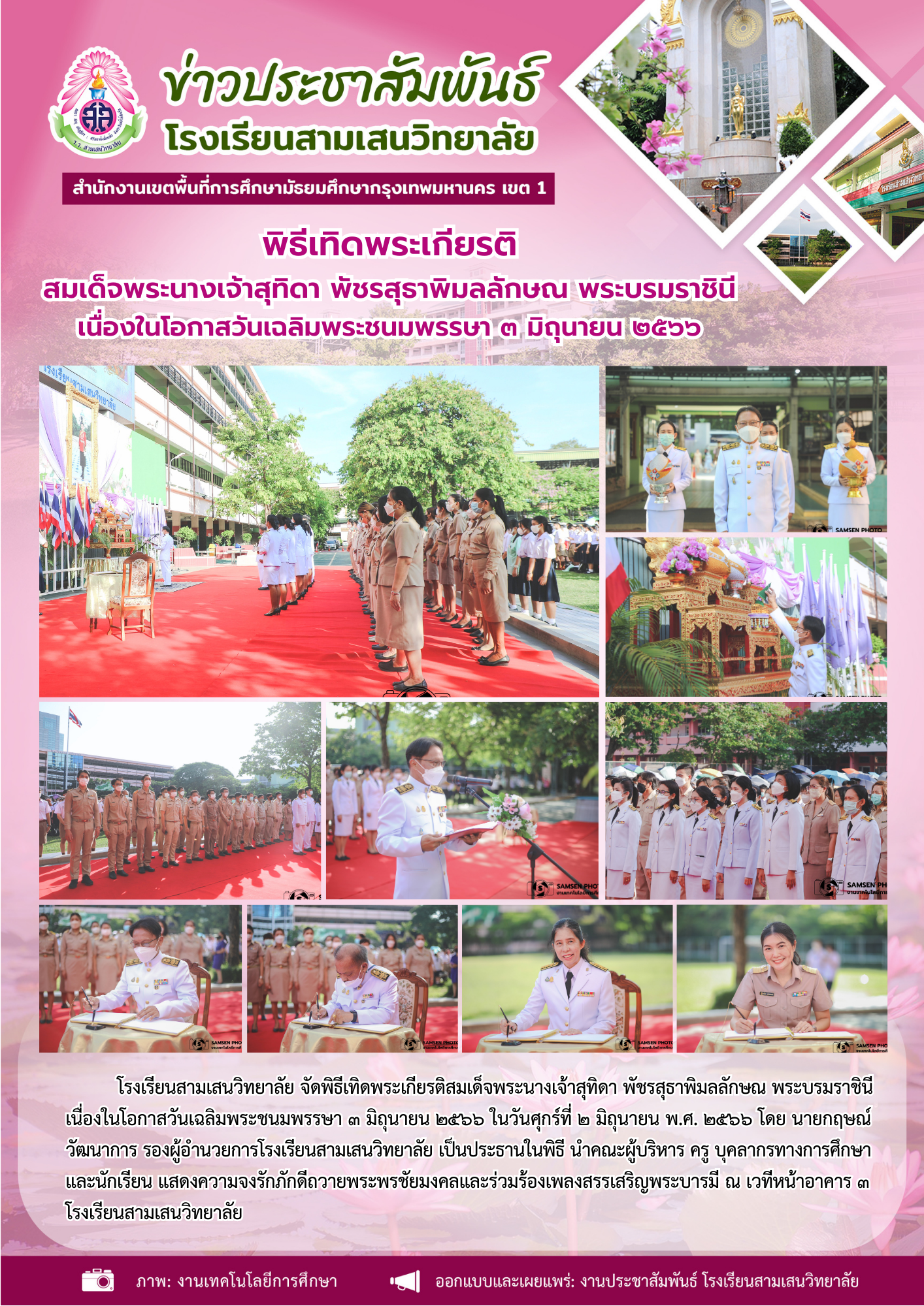 2 มิถุนายน 2566 พิธีเทิดพระเกียรติ สมเด็จพระนางเจ้าสุทิดา พัชรสุธาพิมลลักษณ พระบรมราชินี เนื่องในโอกาสวันเฉลิมพระชนมพรรษา 3 มิถุนายน 2566