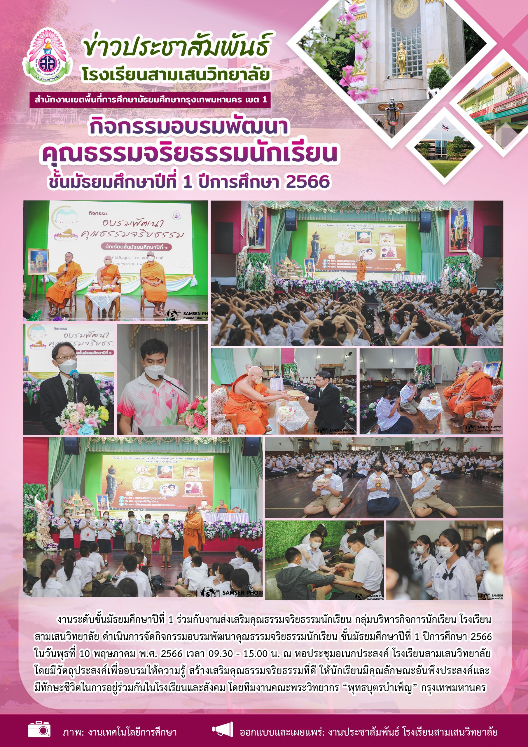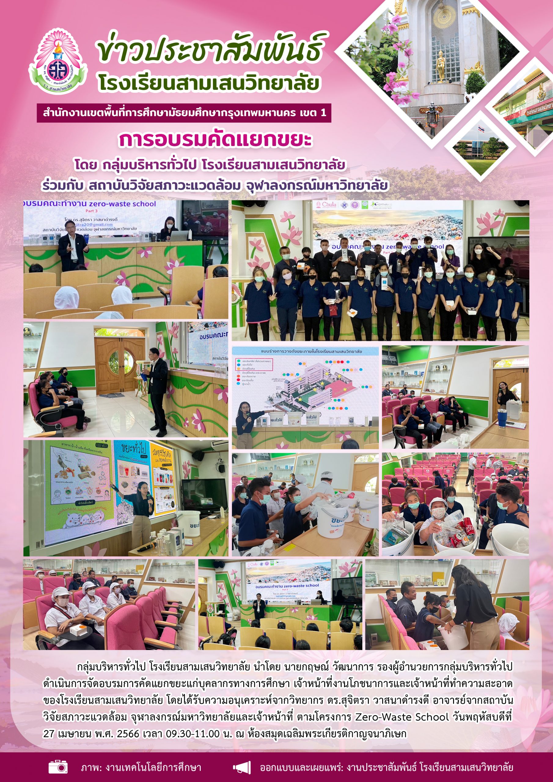 27 เมษายน 2566 การอบรมคัดแยกขยะ โดย กลุ่มบริหารทั่วไป โรงเรียนสามเสนวิทยาลัย ร่วมกับ สถาบันวิจัยสภาวะแวดล้อม จุฬาลงกรณ์มหาวิทยาลัย