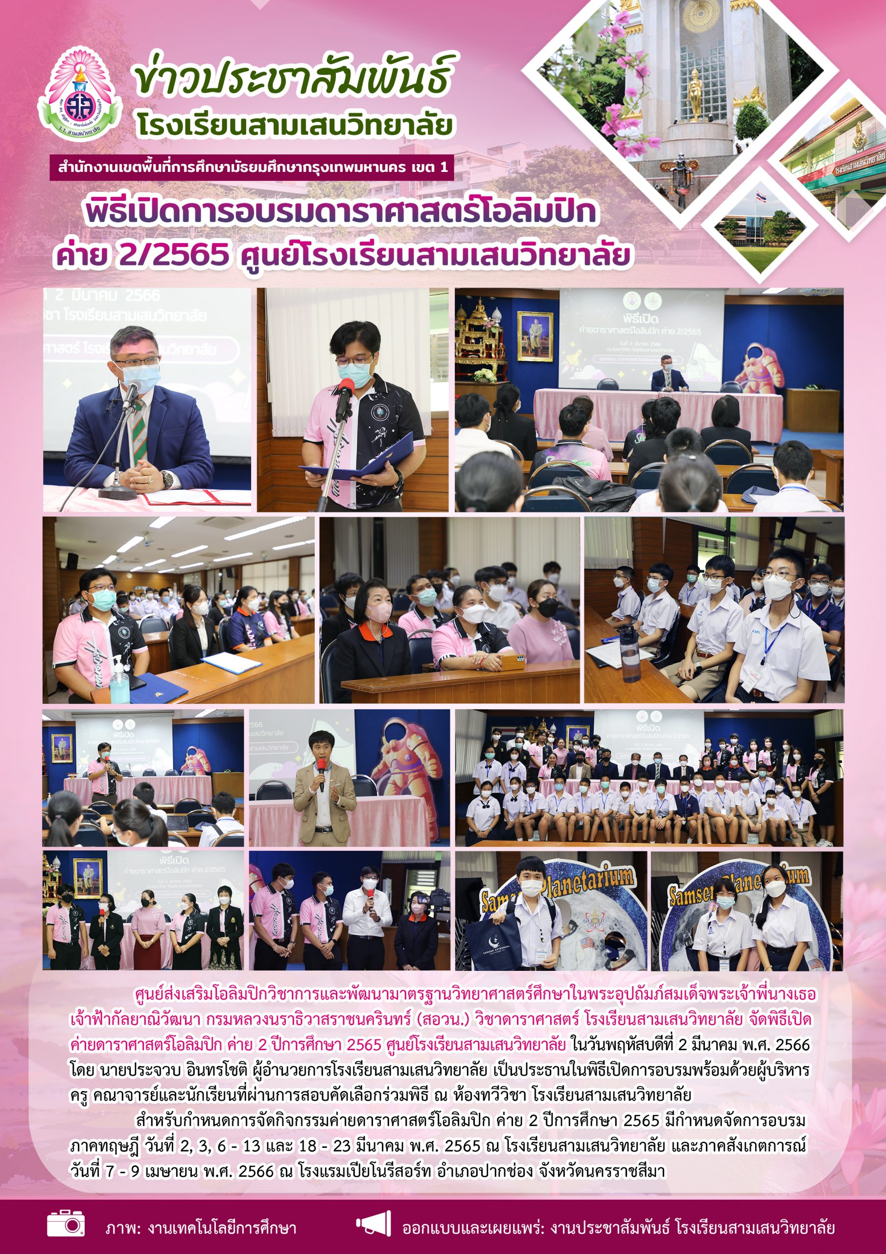 2 มีนาคม 2566 ศูนย์ สอวน. วิชาดาราศาสตร์ โรงเรียนสามเสนวิทยาลัย จัดพิธีเปิดค่ายดาราศาสตร์โอลิมปิก ค่าย 2 ปีการศึกษา 2565